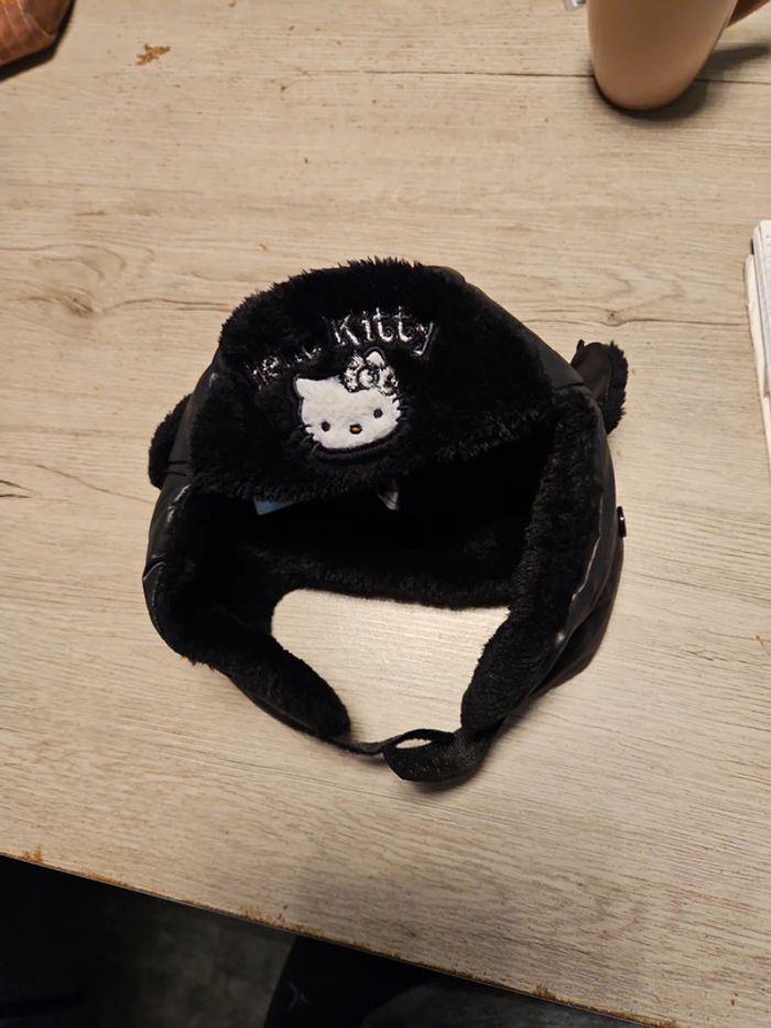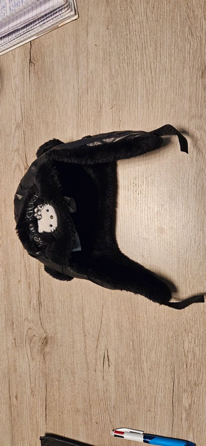 Joli bonnet doublé noir de Hello Kitty. Très chaus. Très peu mis. Lavable. Taille 52 : de 3 à plus ou moins 7/8 ans. Peut s attacher au menton #deborahtock_accessoires #deborahtock_5ans #deborahtock_6ans