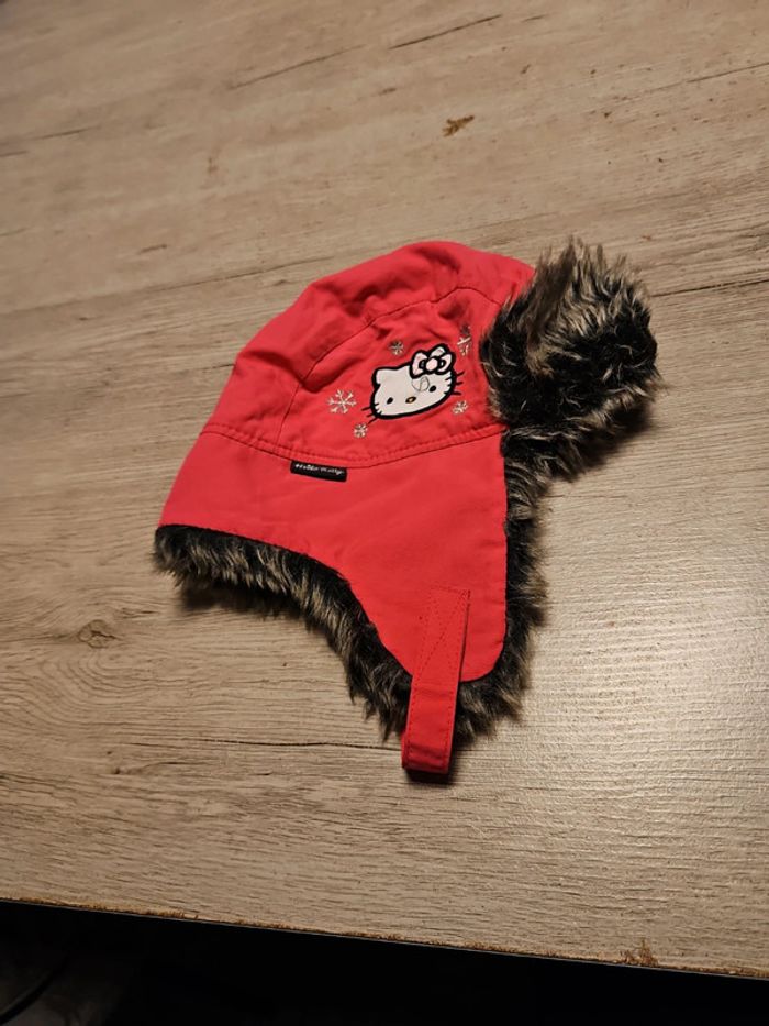 Bonnet polaire rose Hello Kitty, avec fourrure, H&M, taille 3 à 6 ans, nickel - photo numéro 1