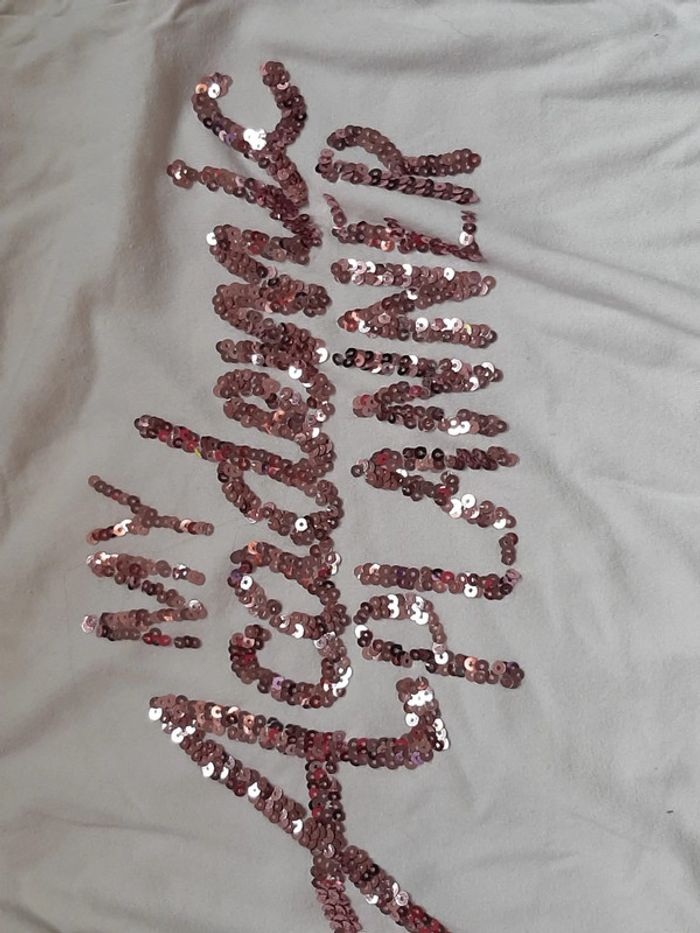 T shirt très peu mis. Col rond. Taille bien. Le dessin est de couleur rose/mauve brillant #deborahtock_12ans #deborahtoc_14ans