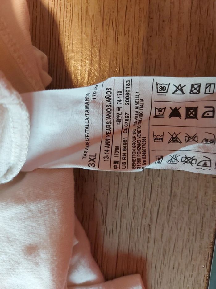 T shirt blanc, manches longues, dessin en sequin, Benetton, taille 13/14 ans - photo numéro 6