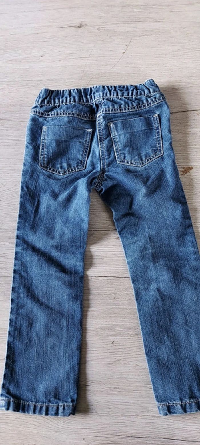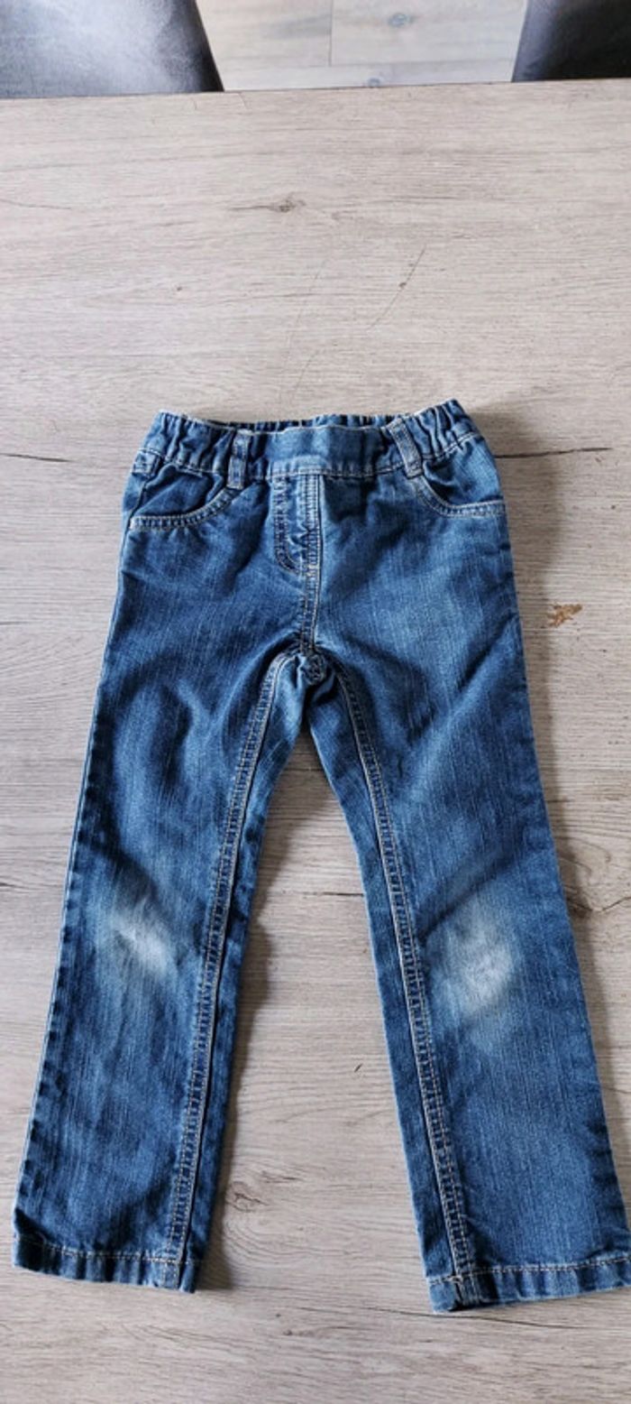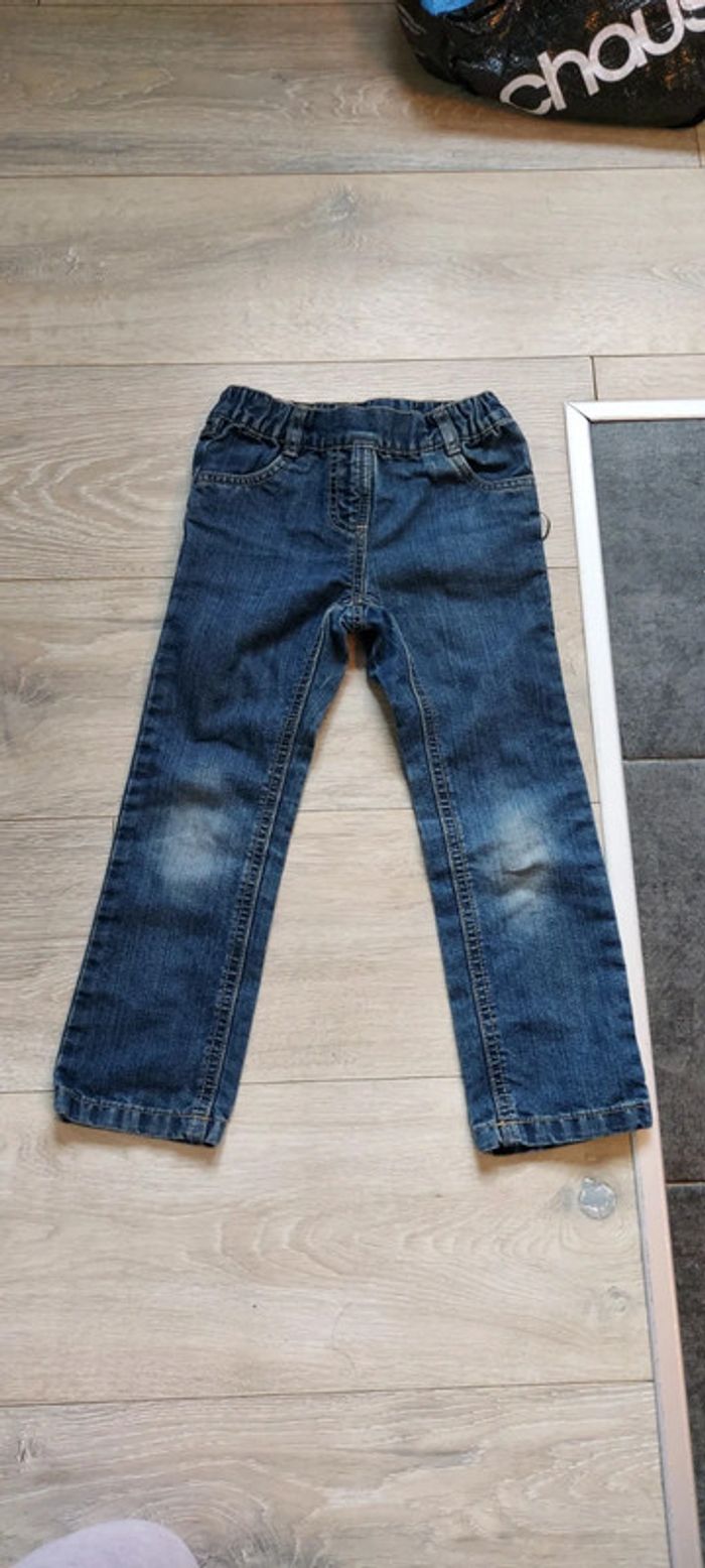 Jean s mixte, élastique à la taille, coupe droite. Legèrement usé aux genous. Convient bien pour du 4 ans #deborahtock_4ans