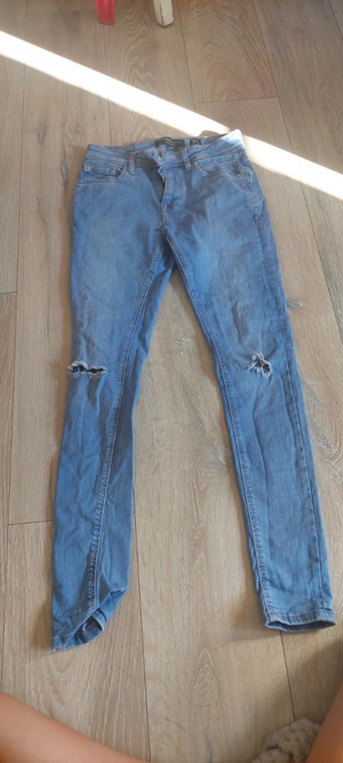 Jean s bleu clair, à trous, Bershka, taille 34 (28/XS), nickel - photo numéro 1