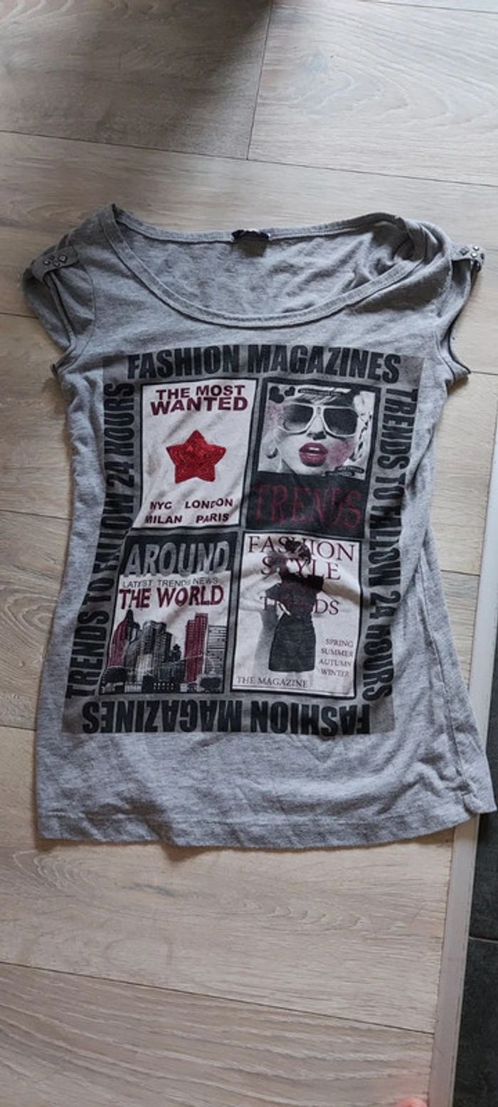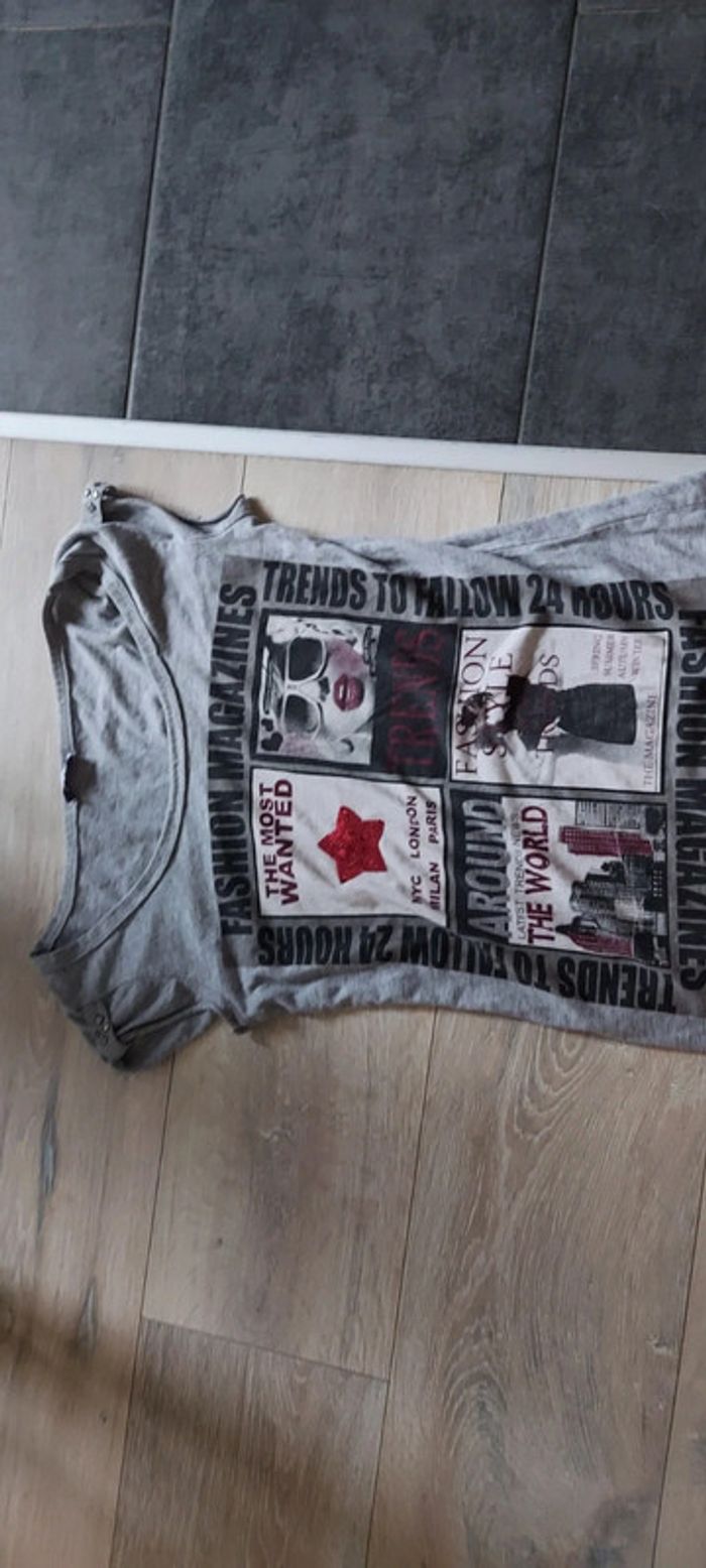 T shirt ado gris, manches courtes, Pimkie, taille S/M, peu mis - photo numéro 1