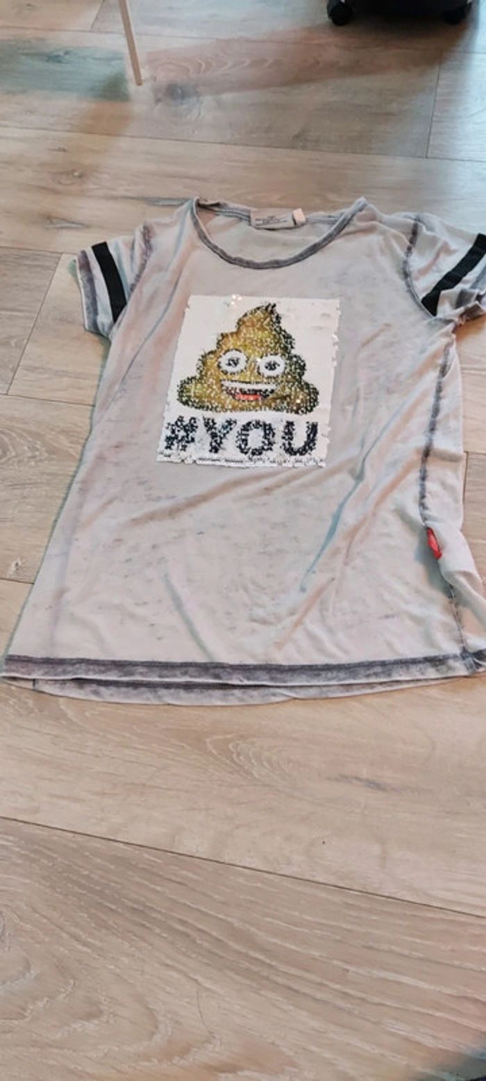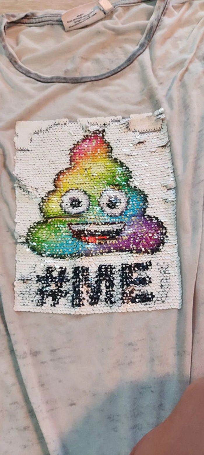 T shirt très leger assez long en bon etat car peu mis. Dessin qui change, en sequin #deborahtock_8ans #deborahtock_10ans