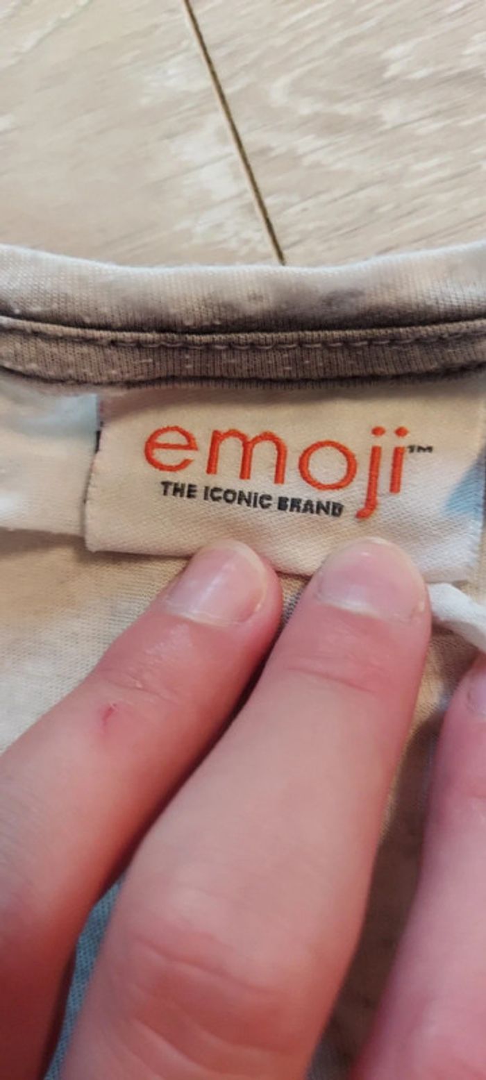 T shirt manches courtes, gris très clair, Emoji, 9/10 ans, peu mis - photo numéro 3
