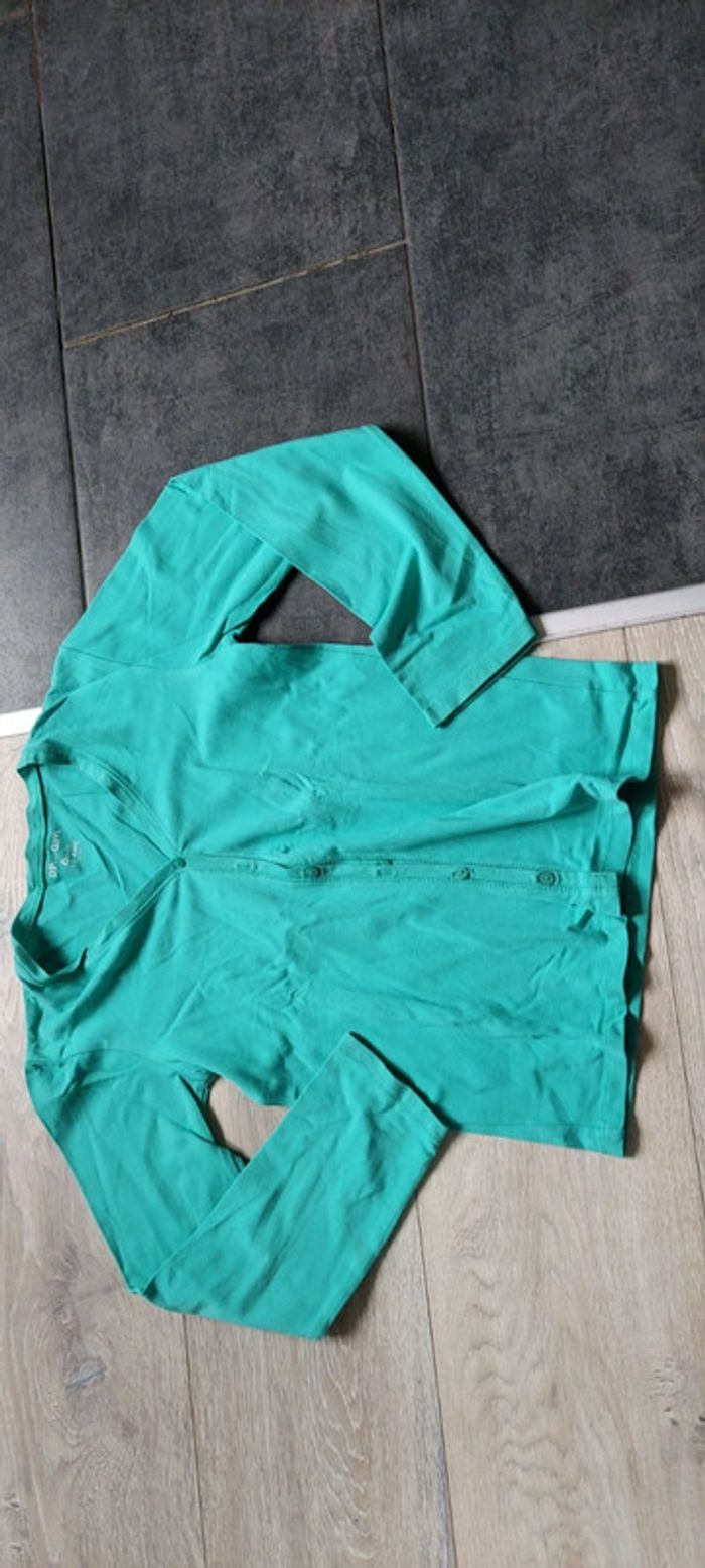 Gilet qui se ferme avec des boutons, très peu mis. Taille 12 ans mais convient aussi pour du 10 ans. Couleur entre vert et bleu. Col en V #deborahtock_10ans #deborahtock_12ans