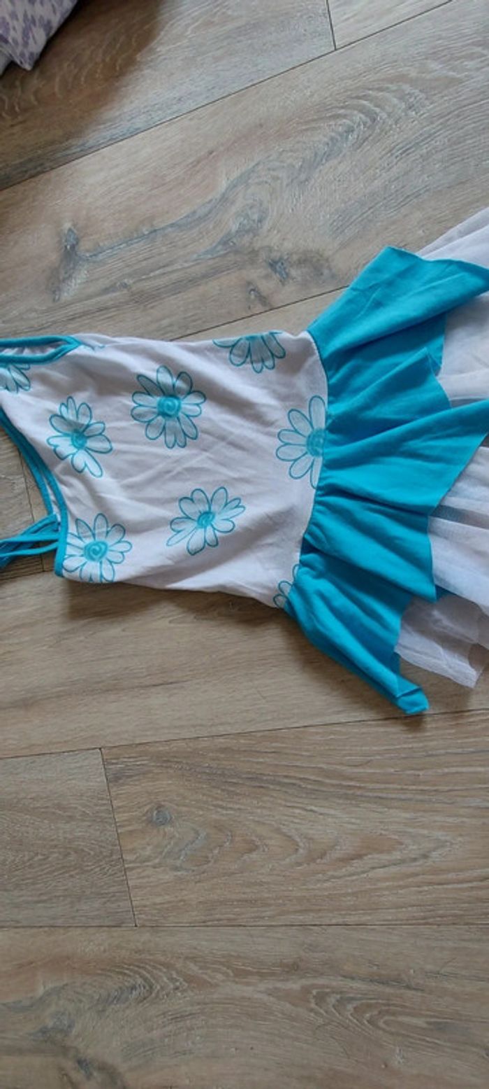 Jolie robe courte blanche et bleu clair, avec tulle, taille 6 ans - photo numéro 2