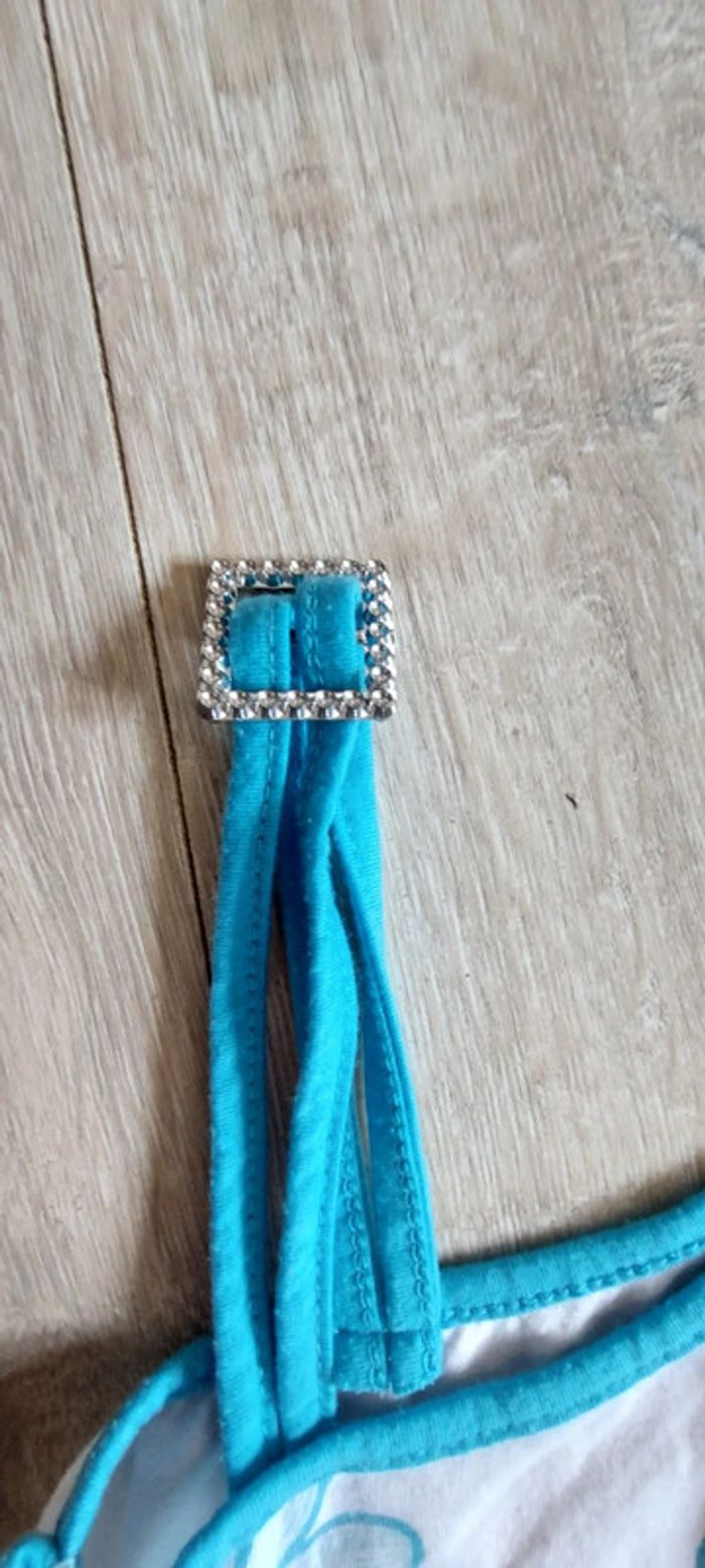 Jolie robe courte blanche et bleu clair, avec tulle, taille 6 ans - photo numéro 6