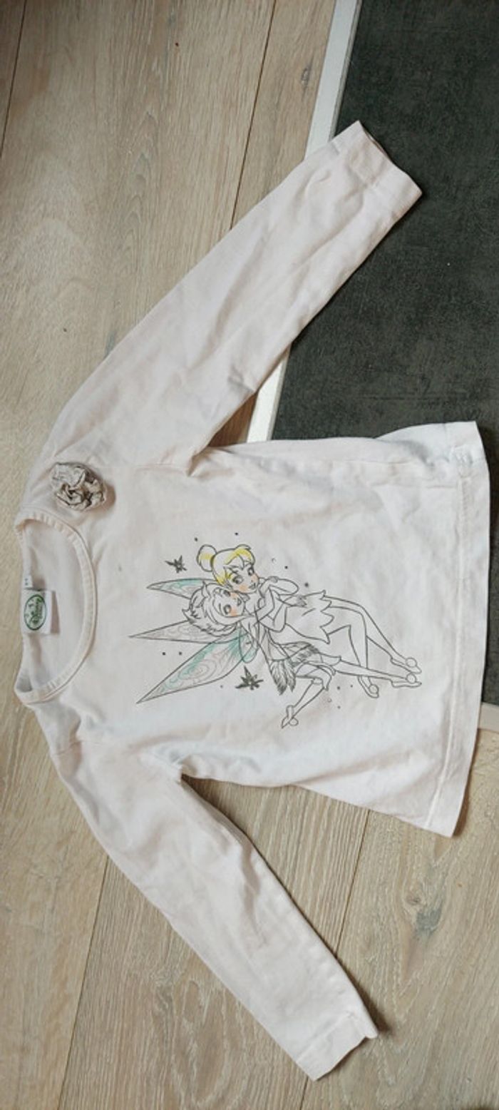 T shirt blanc, manches longues, Fée Clochette de Disney, taille 3/4 ans