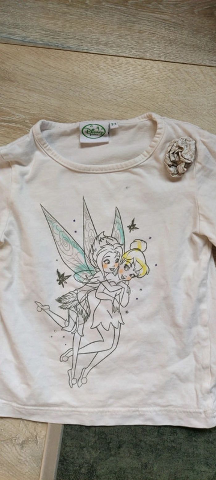 T shirt blanc, manches longues, Fée Clochette de Disney, taille 3/4 ans - photo numéro 2