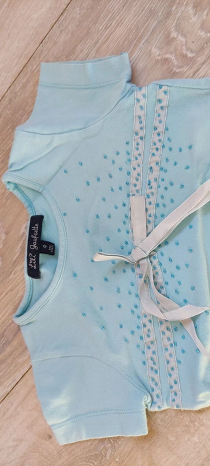 Joli t shirt très élastique. Convient pour du 3 ou 4 ans. Peu mis mais il manque 1 ou 2 brillants. Avec un petit noeud #deborahtock_4ans