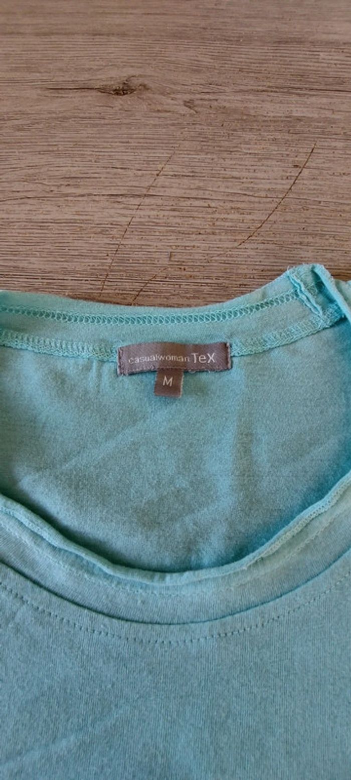 T shirt turquoise sans manche, Casualwoman, Tex, taille M - photo numéro 2
