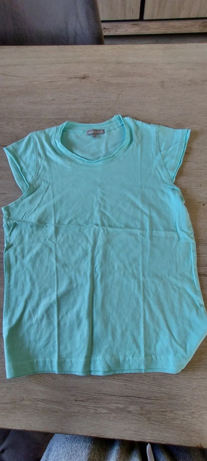 T shirt mis 2 fois, couleur turquoise tirant sur le vert. Col rond #deborahtock_femmeM