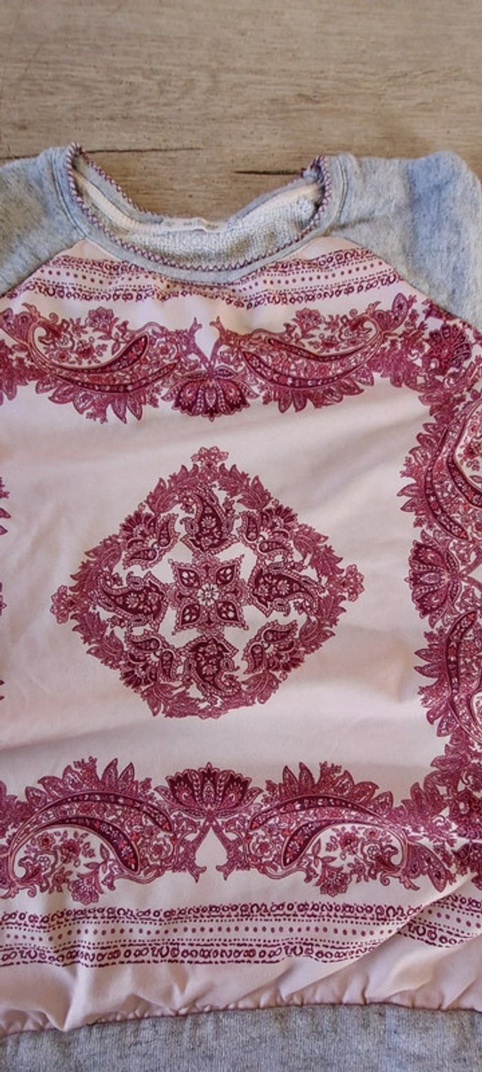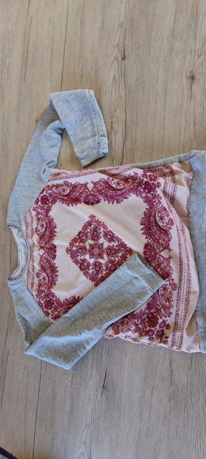 Pull gris avec dessin bordeau, manches longues, Bershka, XS ou 12 ans