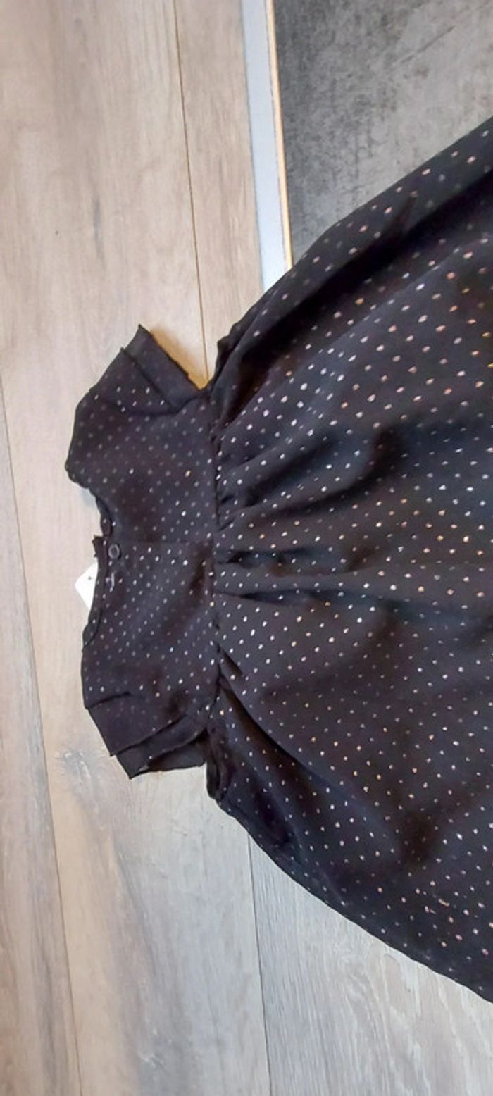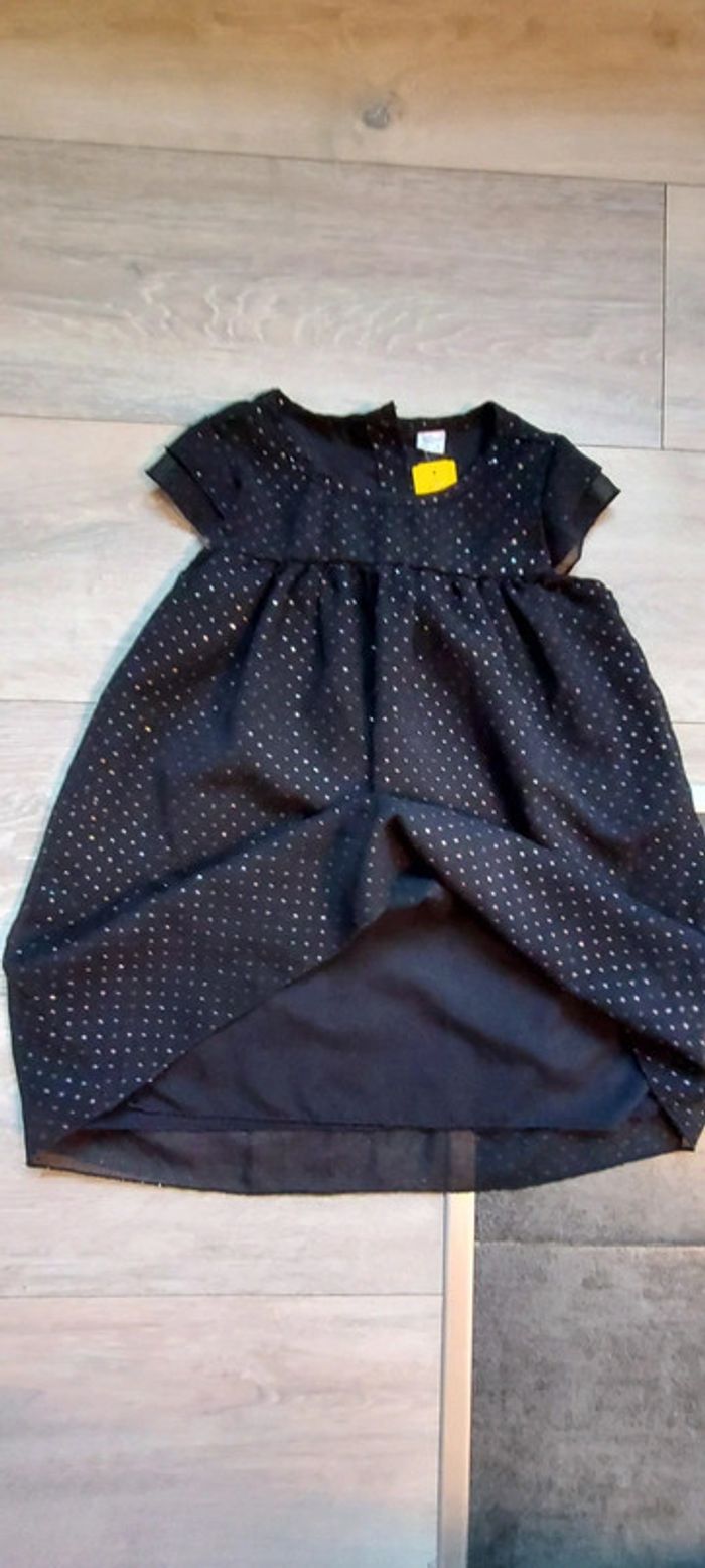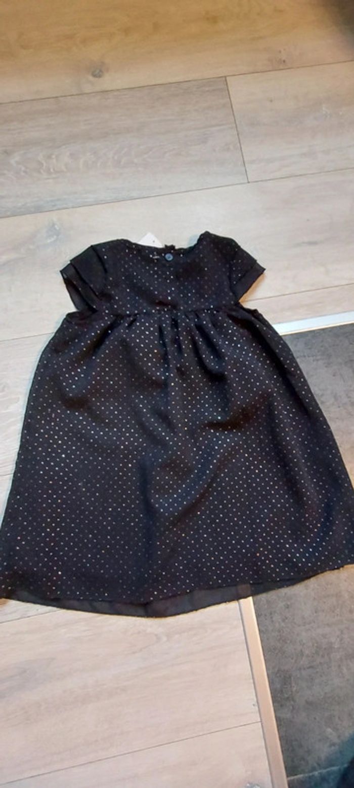 Jolie robe mise 1 fois pour une soiree. Legère, noire avec petits points brillants. Manches courtes. Se ferme par un bouton à l arrière #deborahtock_3ans
