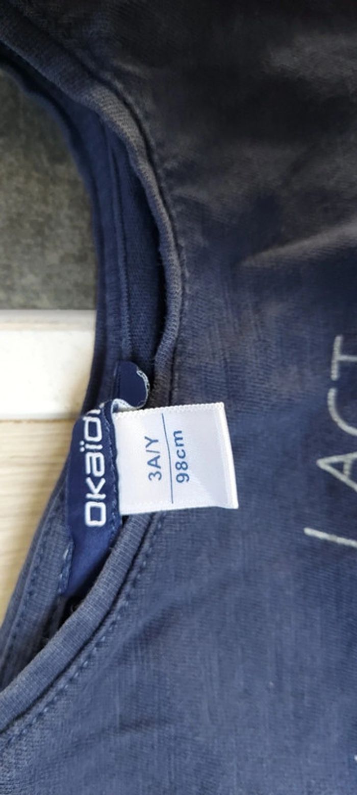 T shirt bleu fonce, manches longues, Okaïdi, 3 ans  peu mis - photo numéro 2