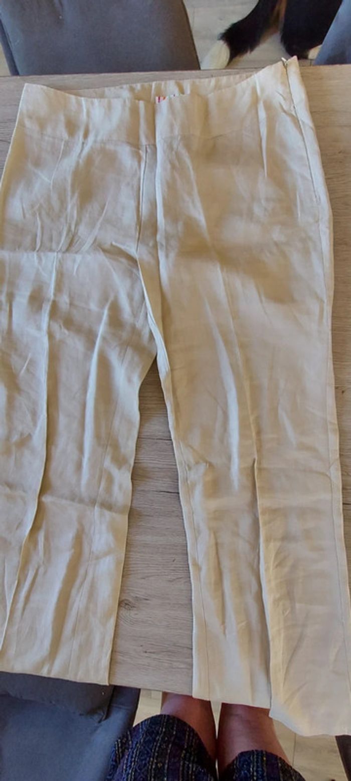 Joli pantalon large, beige en lin, jamais porté, taille 38/40 - photo numéro 5