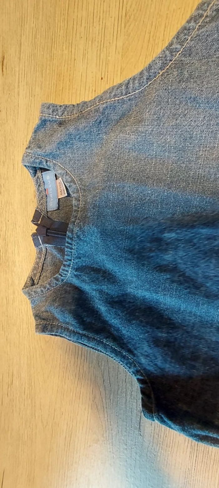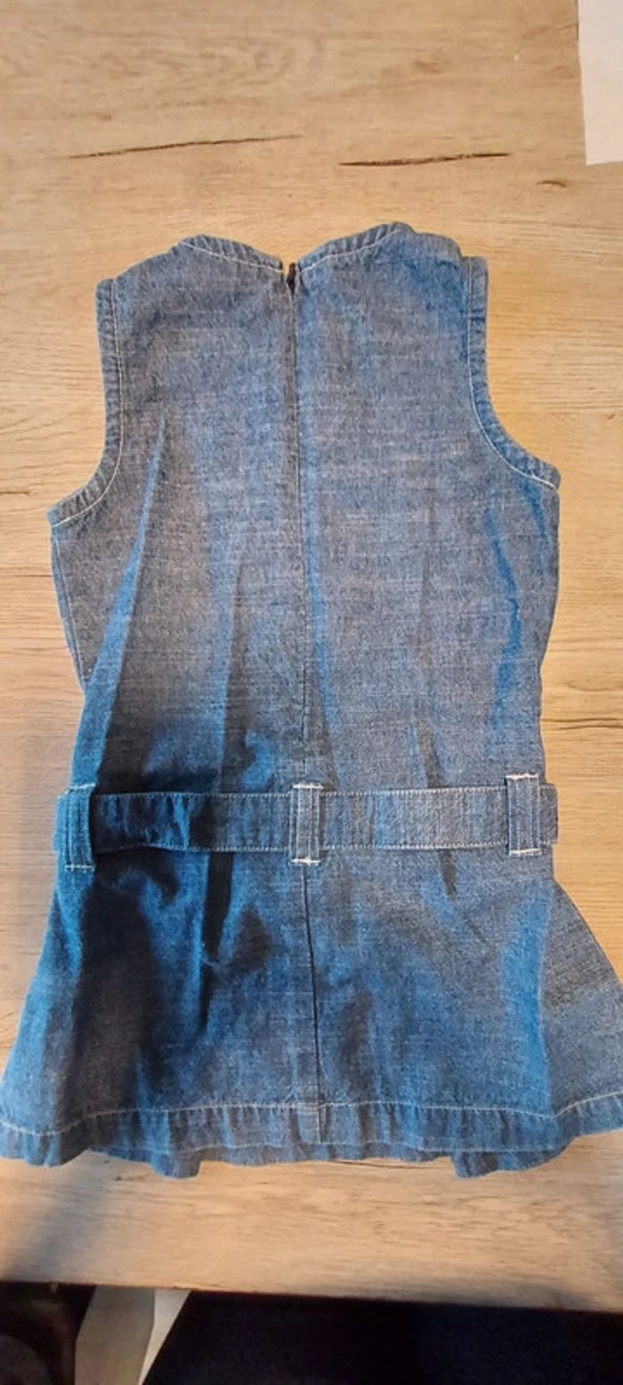 Jolie robe courte bleu en jean s, sans manche, Cyrillus, 4 ans, peu mise - photo numéro 3