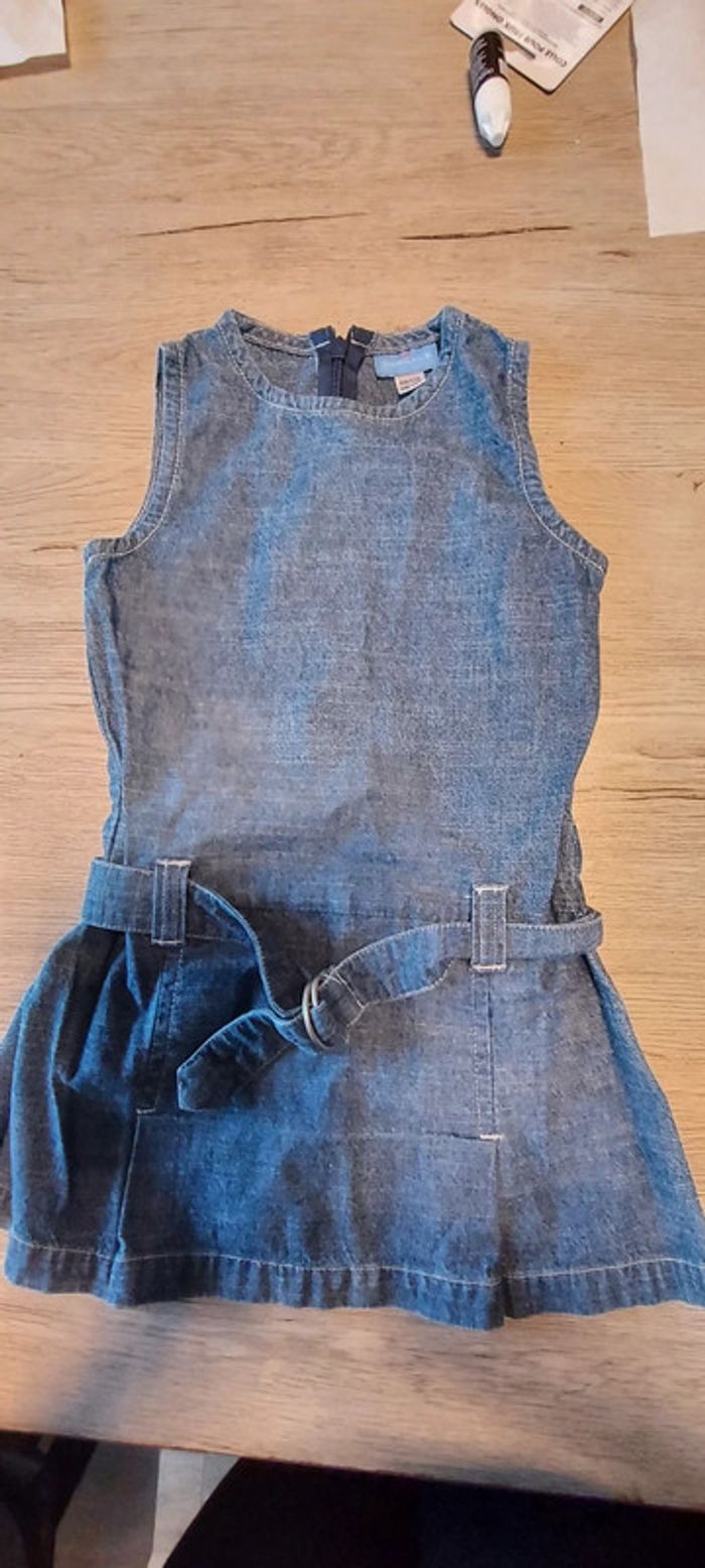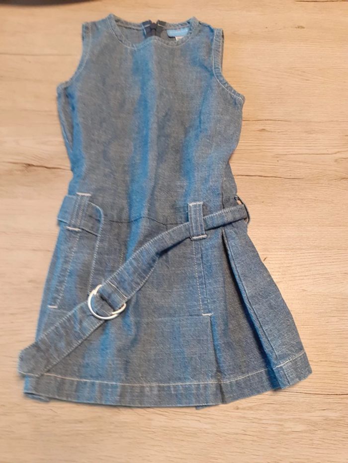 Jolie robe courte bleu en jean s, sans manche, Cyrillus, 4 ans, peu mise - photo numéro 2