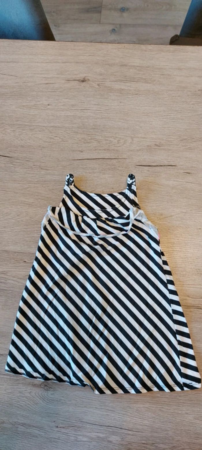 Jolie robe d été noir et blanche, avec une courure rose et un petit volant, bretelles tressées. Etat impeccable cae mise qu une ou deux fois #deborahtock_2ans