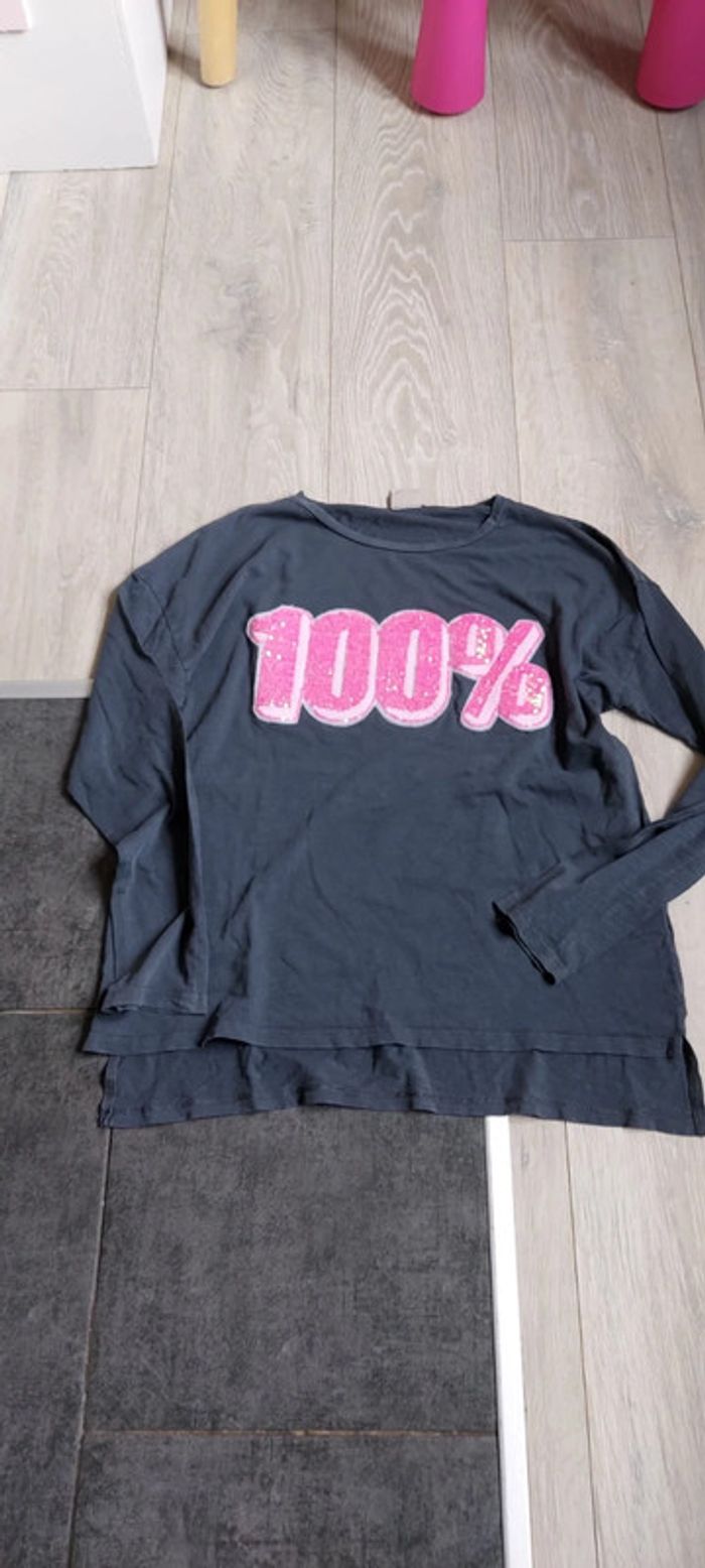 Joli t shirt manches longues de chez Zara. Taille 13/14 ans. Avec inscripion 100% en rose fluo. Nickel car mis que quelques fois. Il est assez long #deborahtock_12ans #deborahtock_14ans
