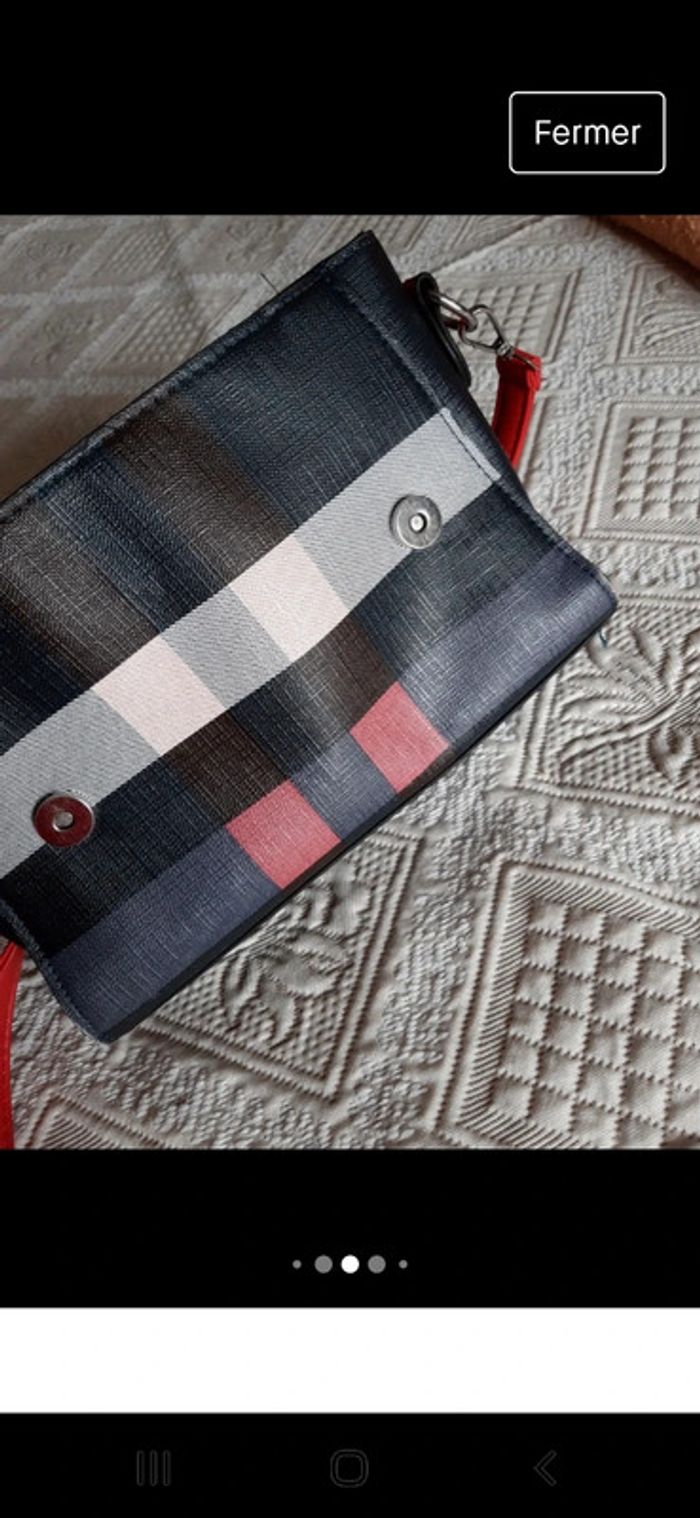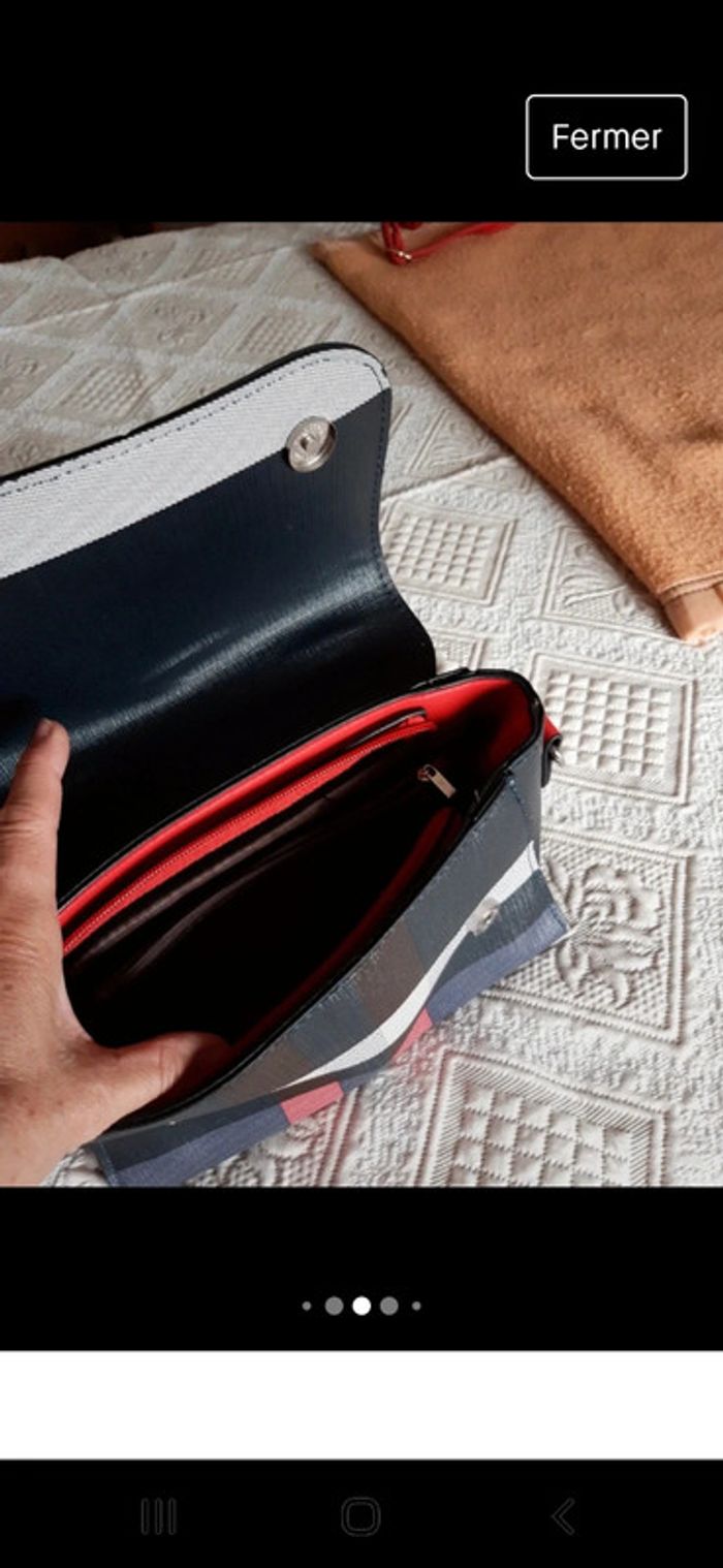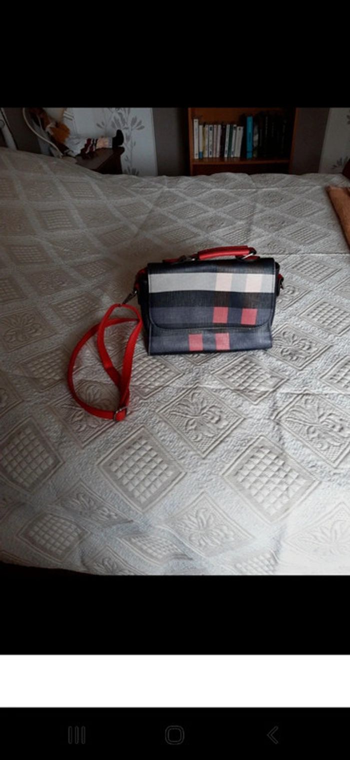 Sac à main bandoulière Rouge gris bleu original On peut retirer la bandoulière pour le porter à la poignée