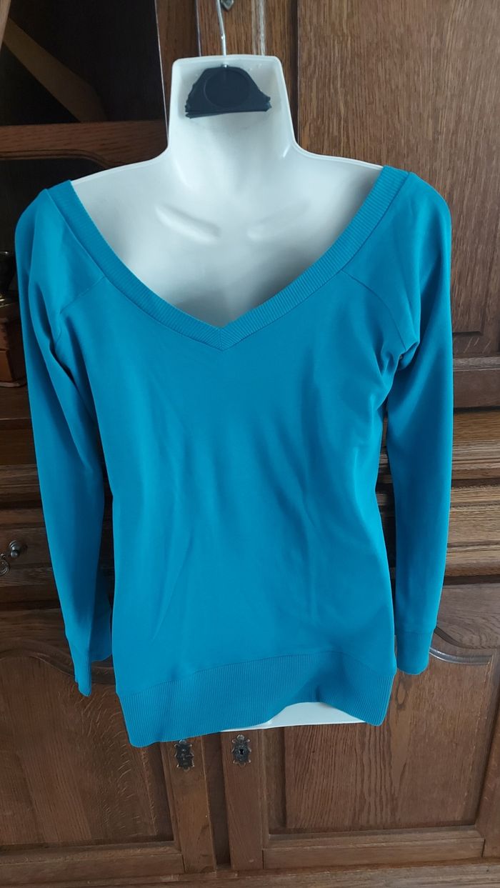 Pull fin Pimkie, taille 38, col V devant et derrière Usé sur le col, voir photos. Couleur comme sur les dernières photos Sous-bras 49 cm, Longueur 65cm