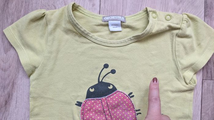 2 micro taches récalcitrantes qui se voient à peine - voir photos. Sinon Nickel Grosses réductions sur les lots et beaucoup d'articles dans mon dressing ! Profitez en ! 🤗😉 Dressing trié par taille -> #miladys18mois Pour les autres tailles: voir la liste dans la description de mon profil, visitez mon dressing ou demandez moi 😉 #teeshirt #vert #coccinelle #orchestra
