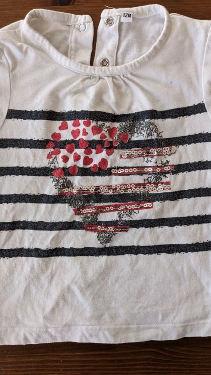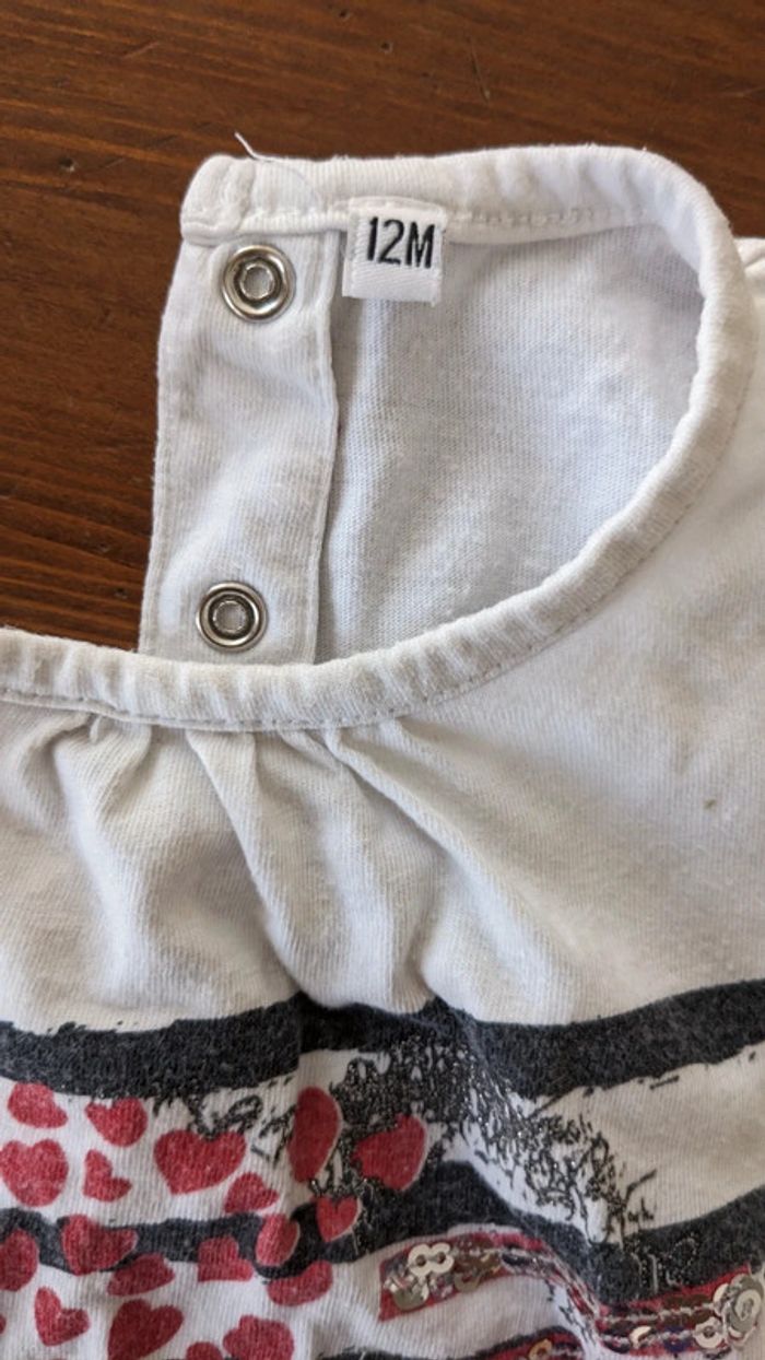 Tee-shirt blanc coeur noir et rouge 12 Mois - photo numéro 5