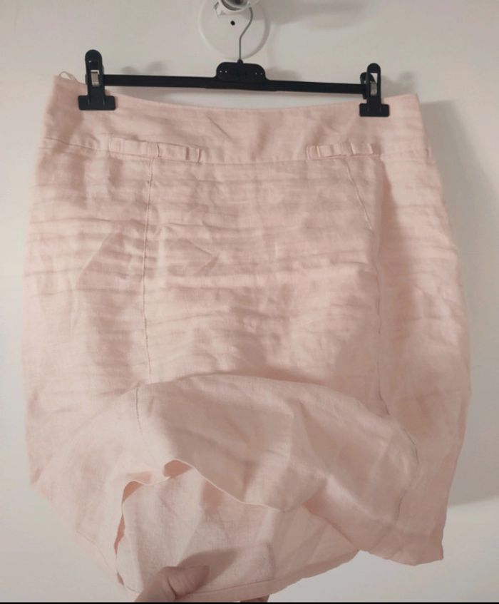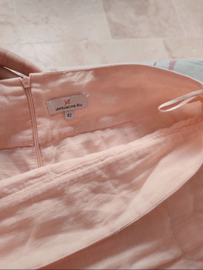 Rose pâle/ saumon. Fermeture invisible. Doublée. Arrive juste au dessus du genoux. Petits noeuds élégants a la ceinture. En parfait état - très peu porté Seul défaut : fil tiré en bas de la fermeture éclair mais c'est très discret - voir les photos, état conforme aux photos Réductions sur les lots ! Et beaucoup d'articles dans mon dressing ! Profitez en ! 👍🤗 - chemisier aussi à vendre dans mon dressing 😉 Dressing trié par taille -> #miladys42 #jacquelineriu #jupe #jupedroite #saumon #rose #rosepale #jupetailleur #jupe42 S8
