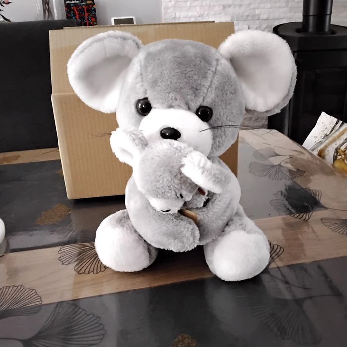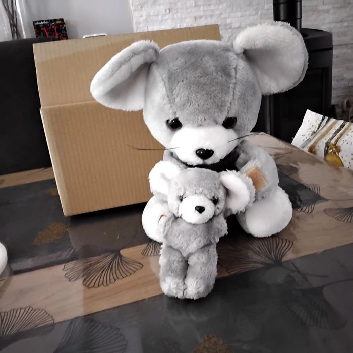 Maman souris et son bébé Peluche des années 1990 Maman enlace son bébé avec scratch impeccable En très bon état Hauteur maman : 28 cm Hauteur bébé : 14 cm #lamadelon_jouets_bébé