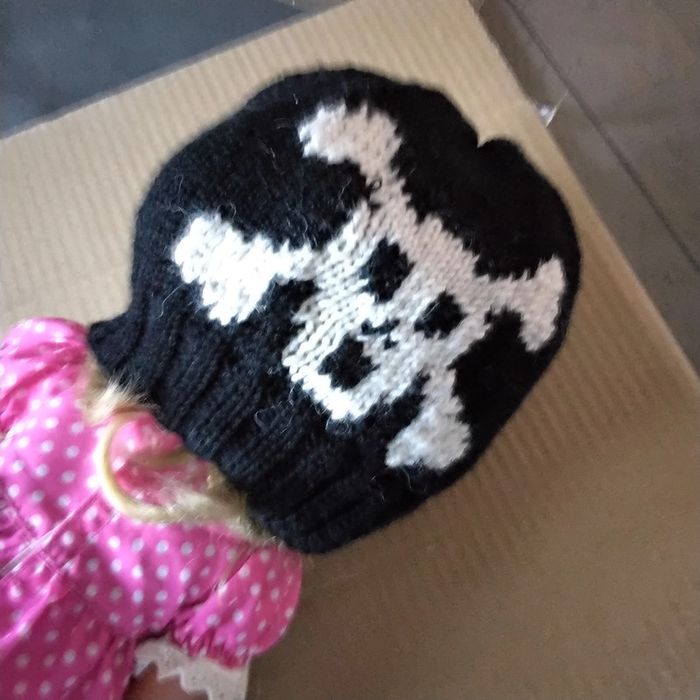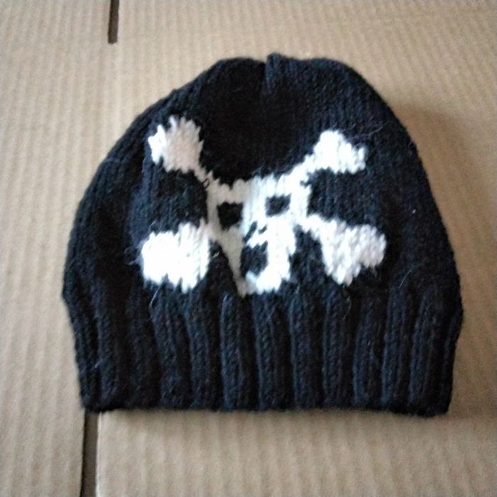 Bonnet 24/36 mois garçon Tricoté main Noir avec une tête de mort pirate