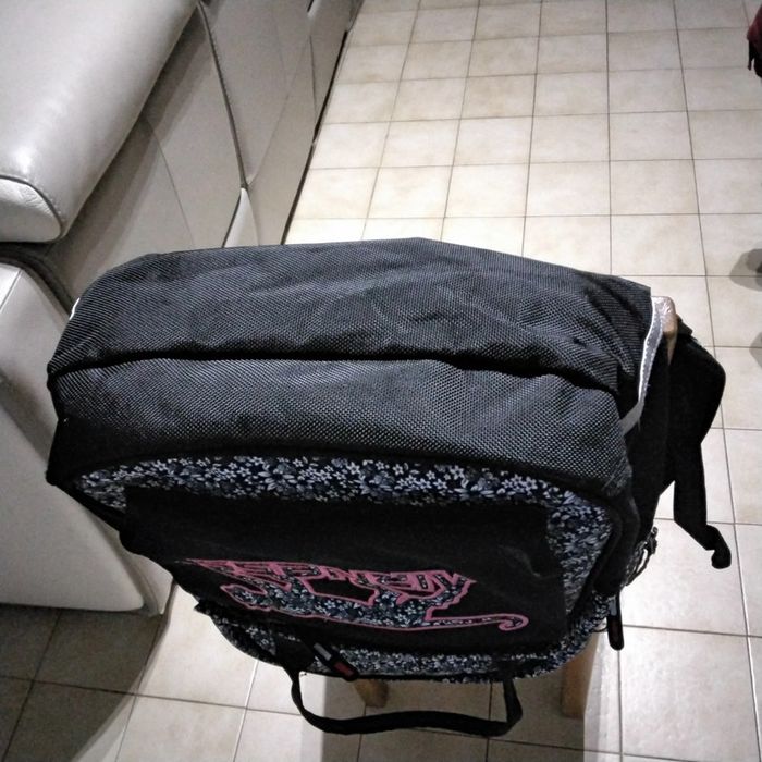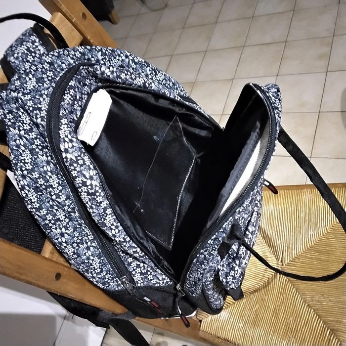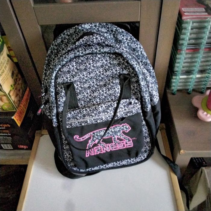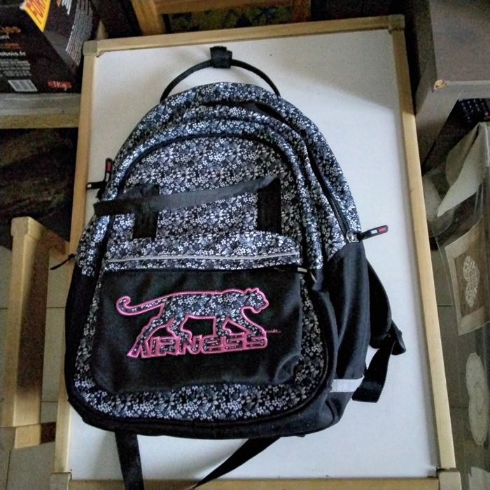 Sac à dos fille modèle Camille AIRNESS 2 grands compartiments 1 petit compartiment devant 1 petite pochette intérieure zippée La pochette intérieure en plastique est abîmée Hauteur : 46 cm Largeur : 33 cm Profondeur : 17,5 cm Possibilité de porter par des poignées Très bon état #lamadelon_fille_accessoires