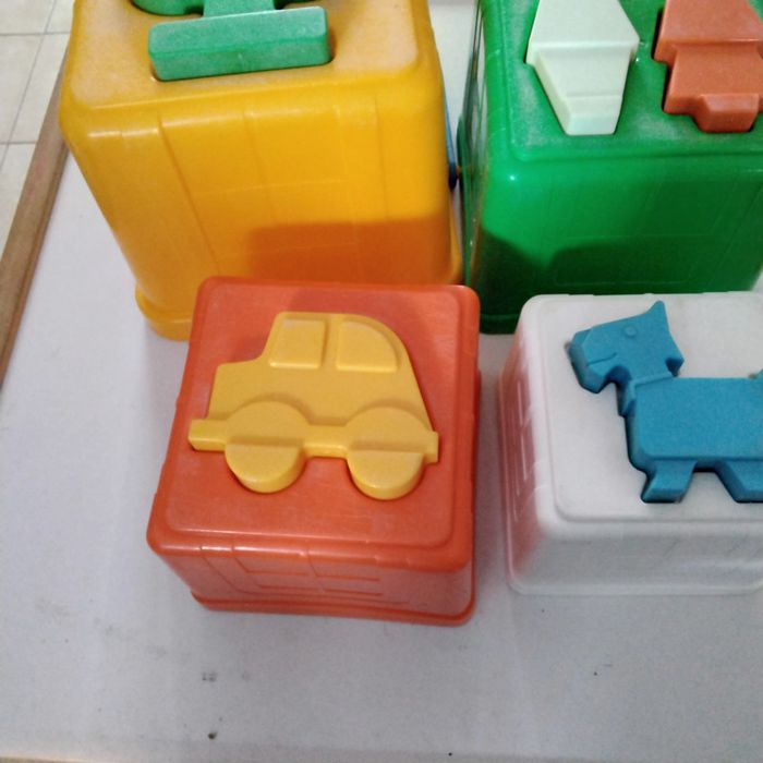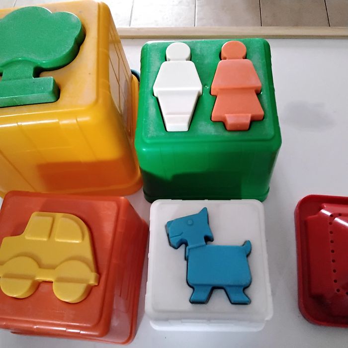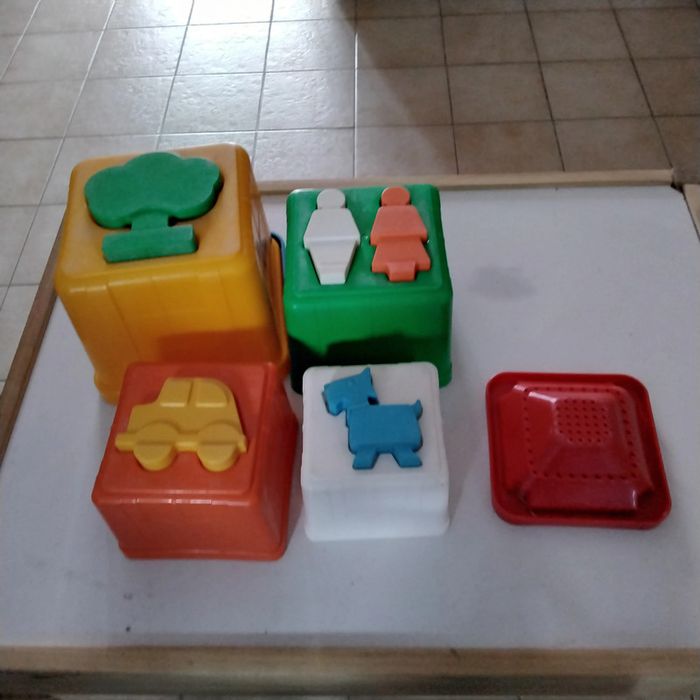 Tour Pyramide CHICCO L’enfant doit encastrer les formes dans chaque cube et superposer les cubes pour faire une tour Jeu complet , pas cassé présente des traces d’usure mais reste en très bon état De 18 mois à 3 ans Jouet vintage de 1994 #lamadelon_jouets_bébé