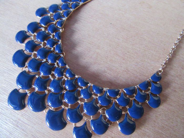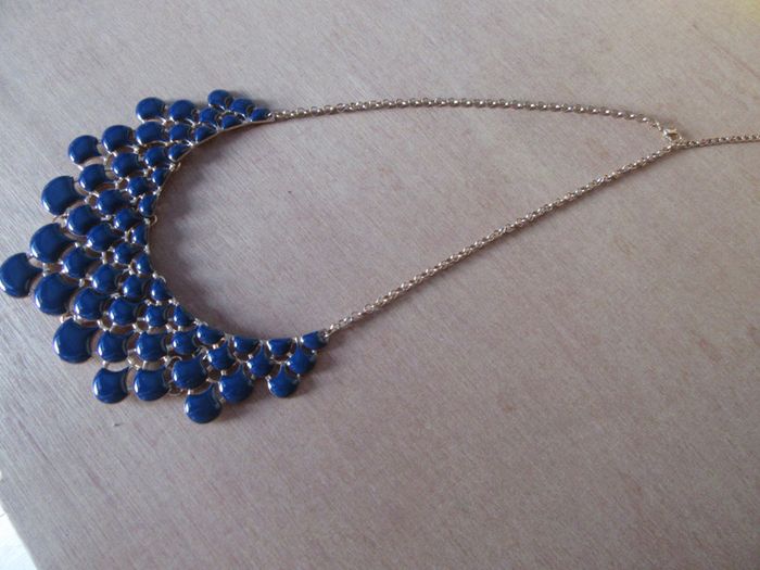 Tour de cou perles bleues chaine dorée  fantaisie