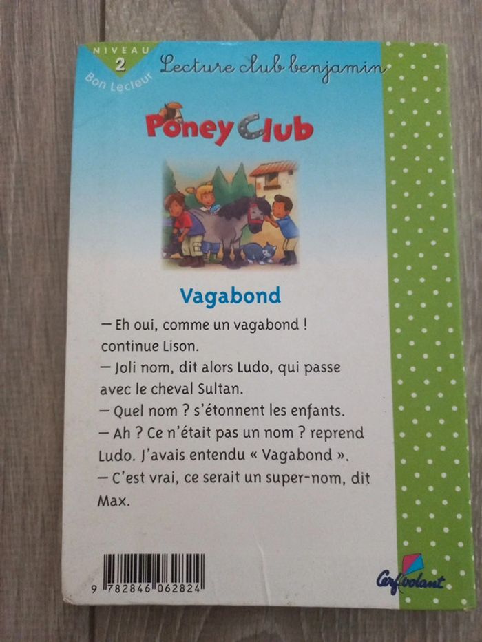 Livre poney club Vagabond, lecture club Benjamin niveau 2 Très bon état, écriture au debut du livre #cbalivre