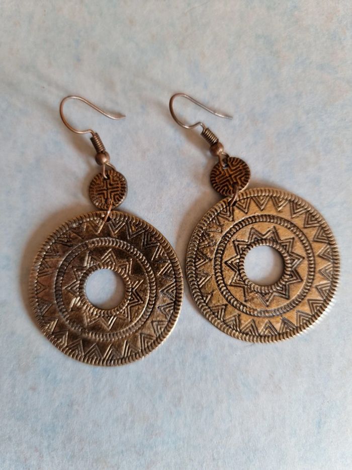 Boucles d'oreilles pendantes Couleur cuivrée Hauteur totale 6 cm #Conniebijoux