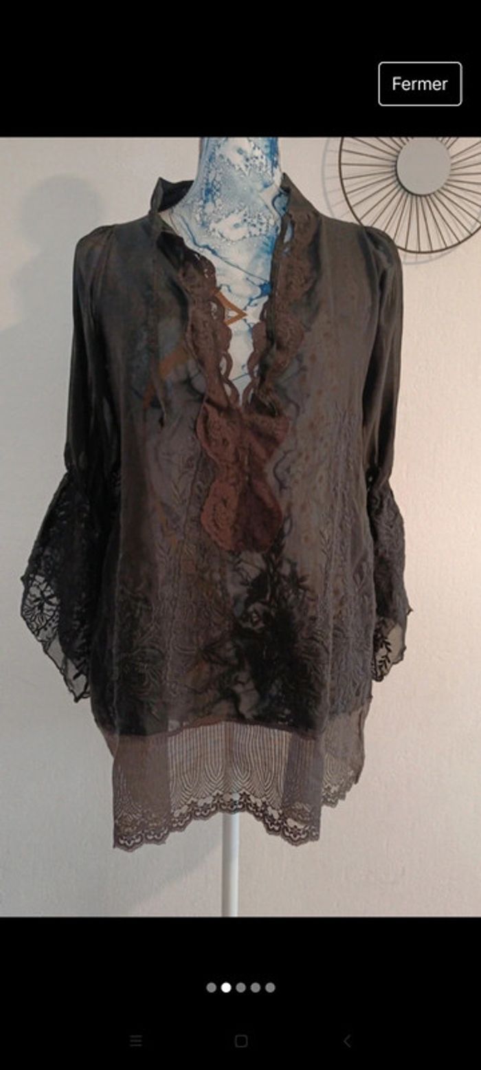 Très belle tunique manches longues évasées sur le bas . T 38, excellent état