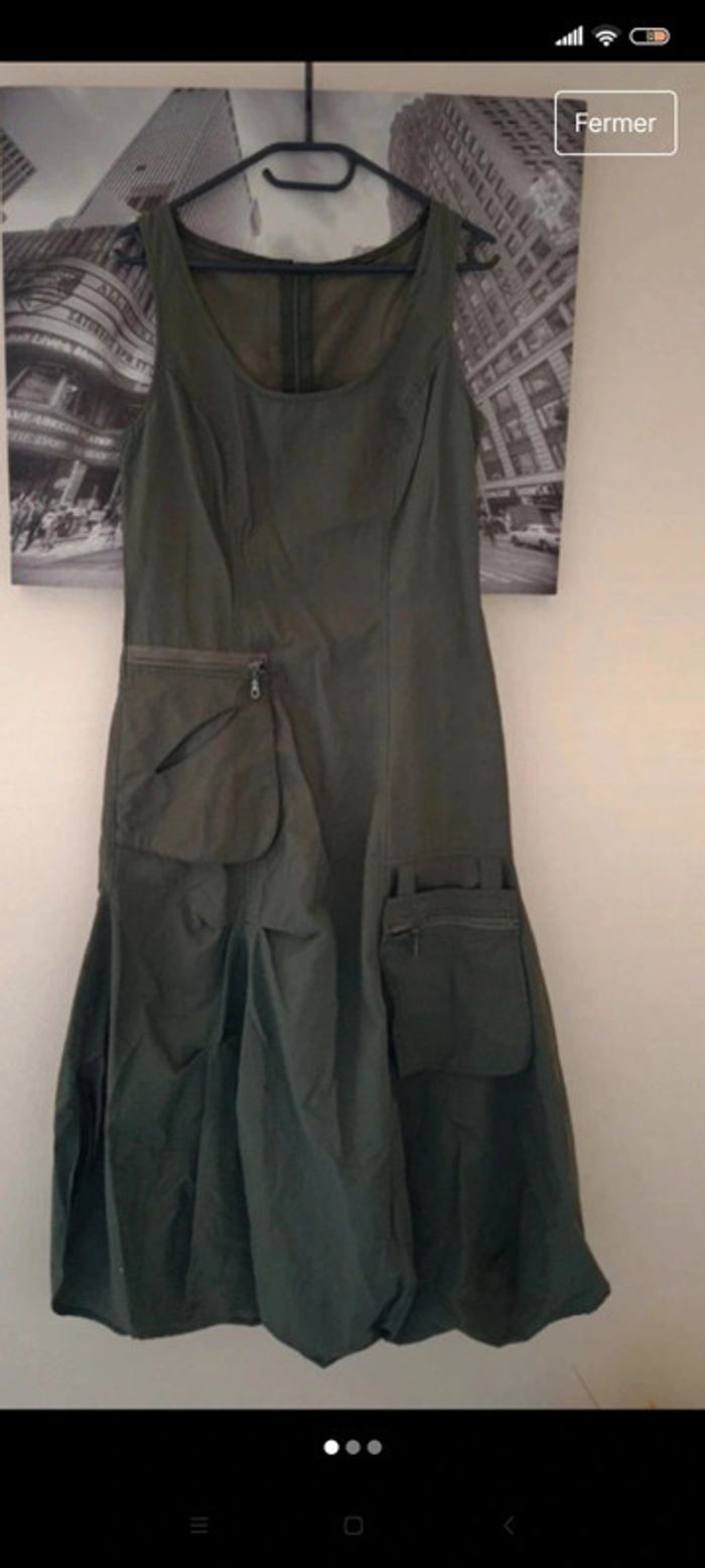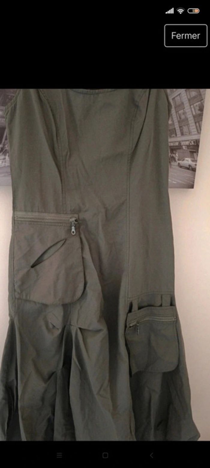 Robe longue d été kaki t 38 étiquette manquante, excellent état , façon un peu évasée sur le bas