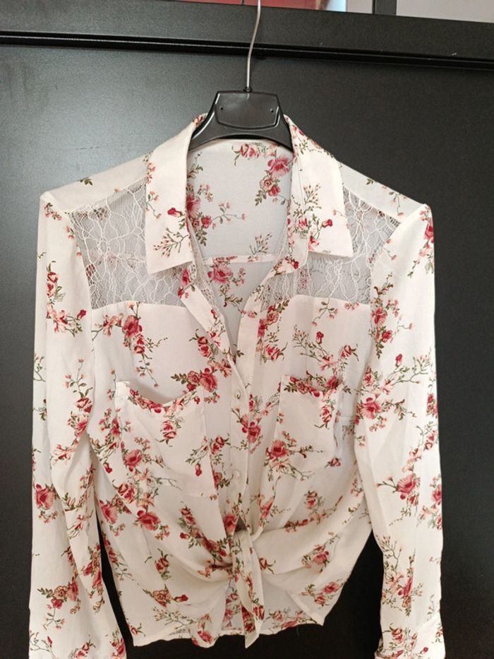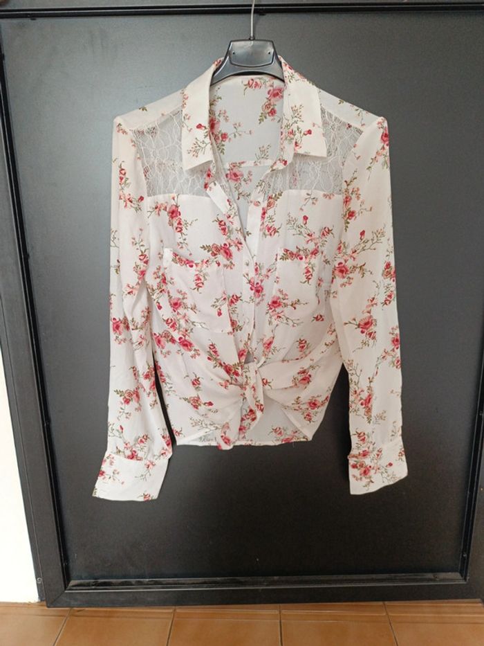 Chemisier Tally weijl t 36, motifs fleuris avec transparence sur le haut. Tbe