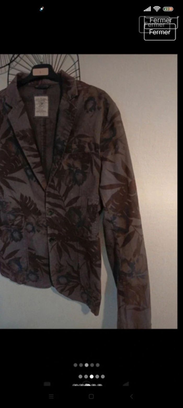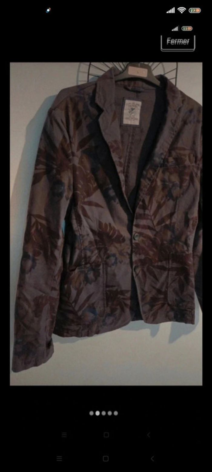 Blazer ceintrée homme t 42 taille petit, indiqué 48). Motifs feuilles
