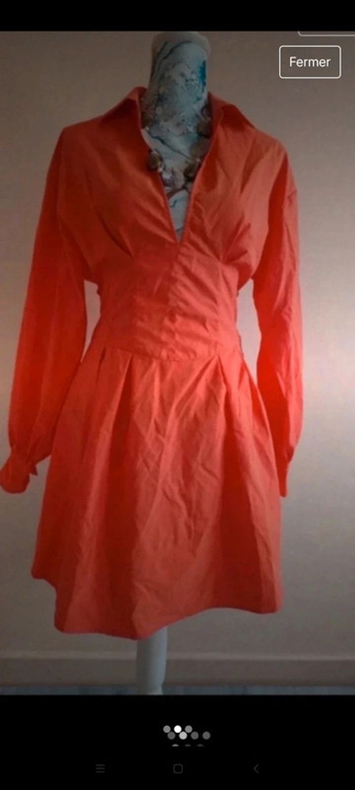 Robe classe et originale, t 38 ( étiquette manquante), tbe. Ouverte dans le dos . Couleur corail