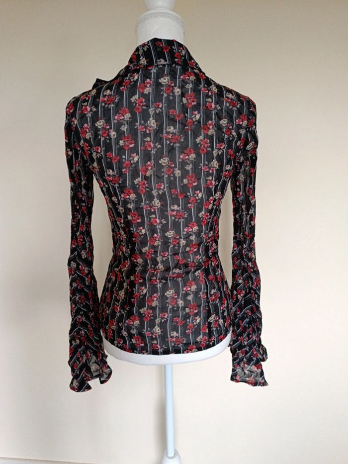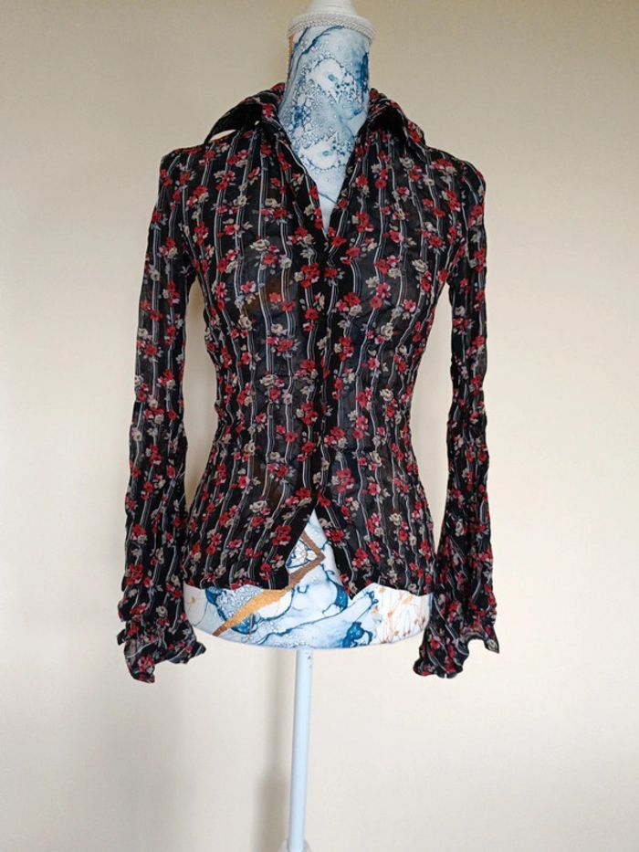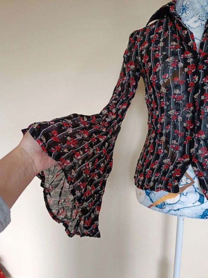 Chemise légèrement transparente, t un 36 ( étiquette manquante). Manches ample sur le bas très originale