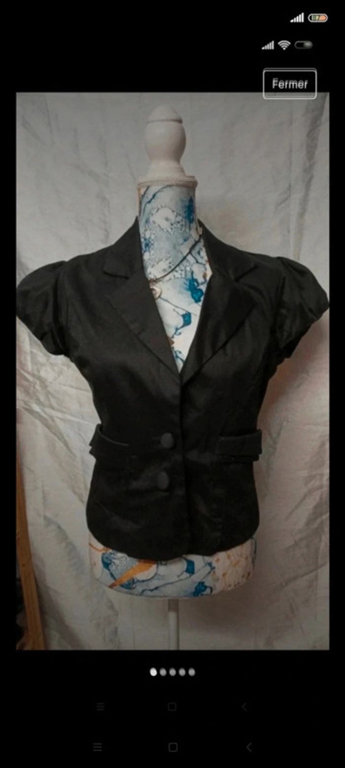 Blazer ceintrée manches courtes effet boule, t 40. Très sympa avec un petit jean