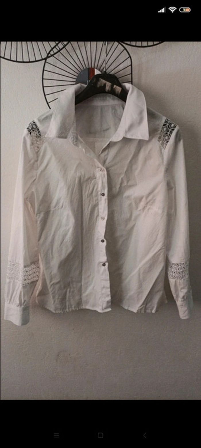 Chemise manches longues t 38/40 , dentelles sur les bras. Tbe juste un petit point noir #chemiseblanchefemme