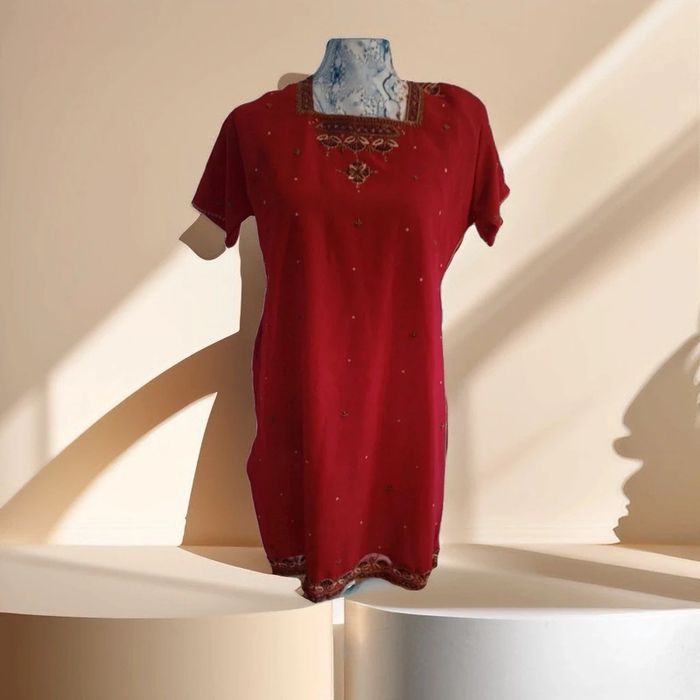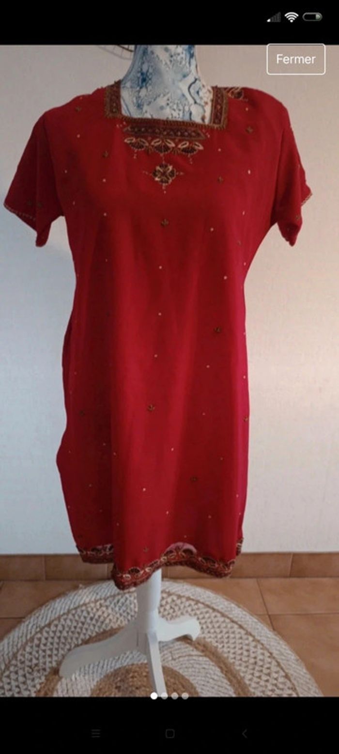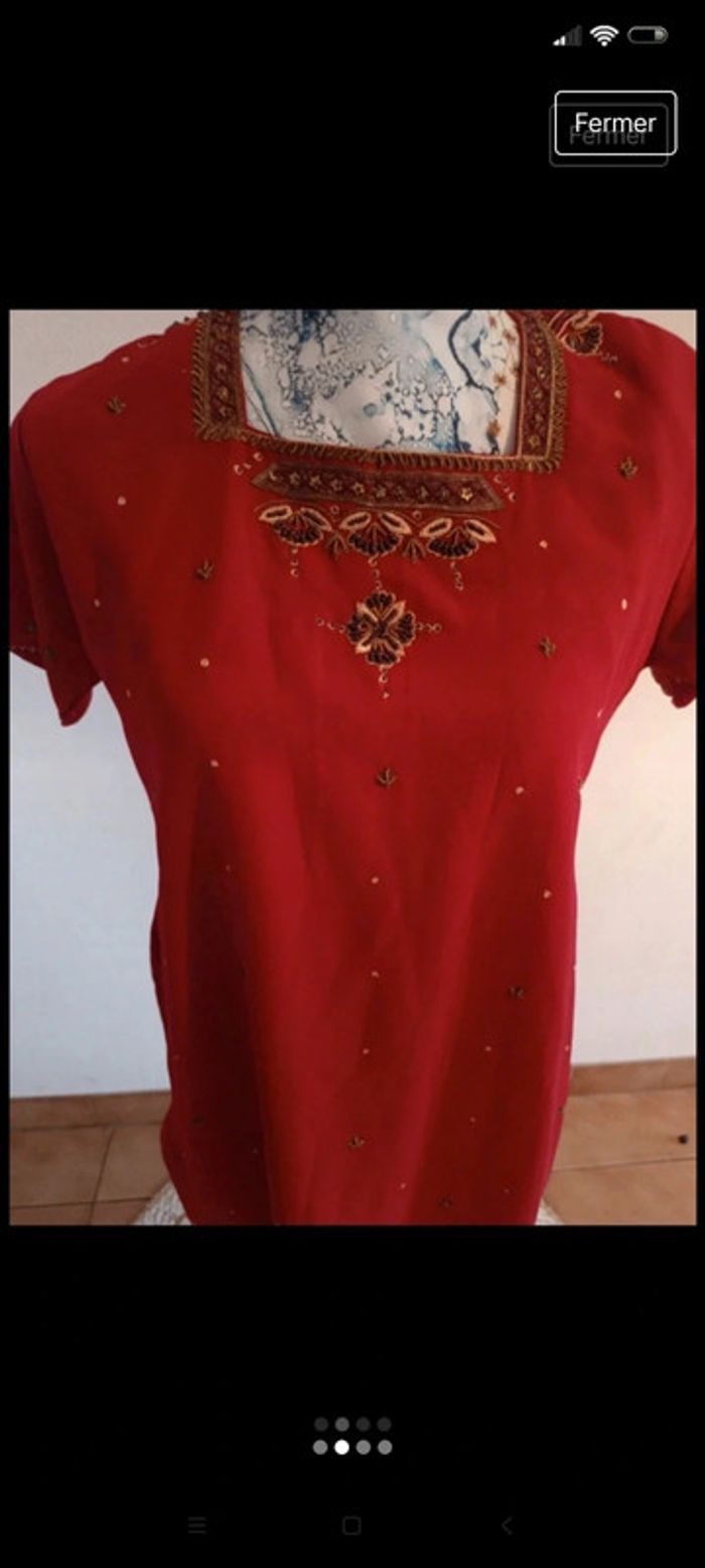 Blouse manches courtes, t 40 (étiquette manquante) fendu sur le côté, tbe. #blouserouge40