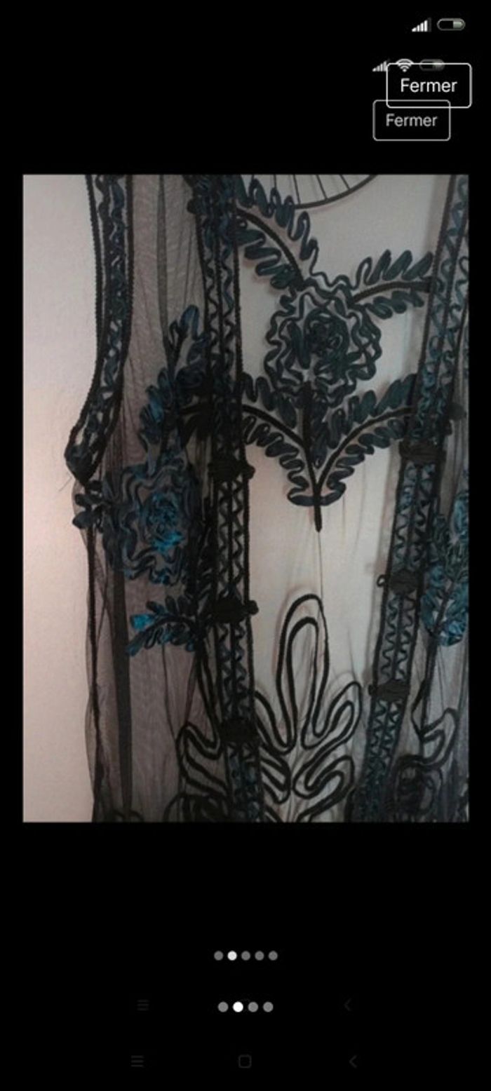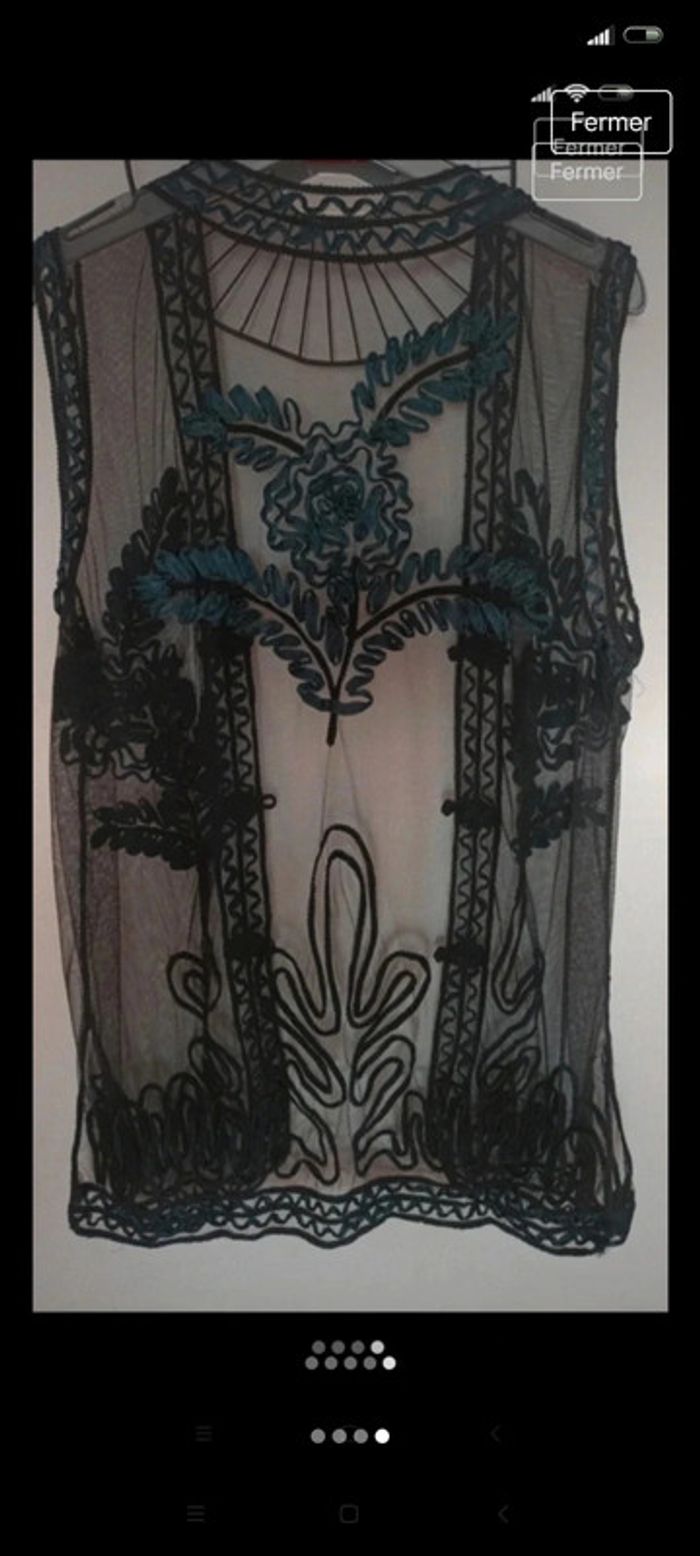 Petit gilet sans manche noir, les motifs ont un reflet bleuté très beau rendu. Taille unique #giletsansmanche