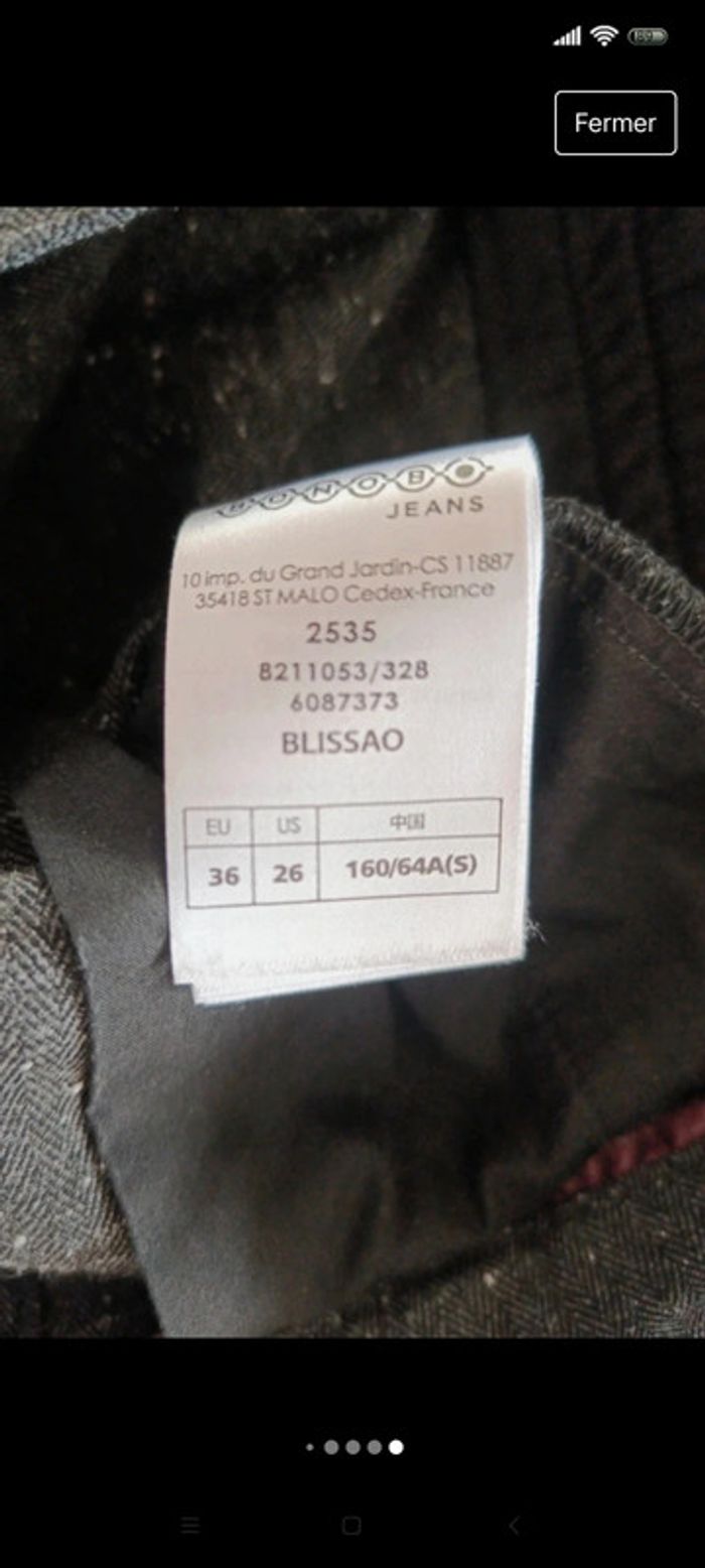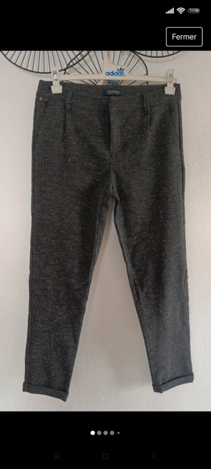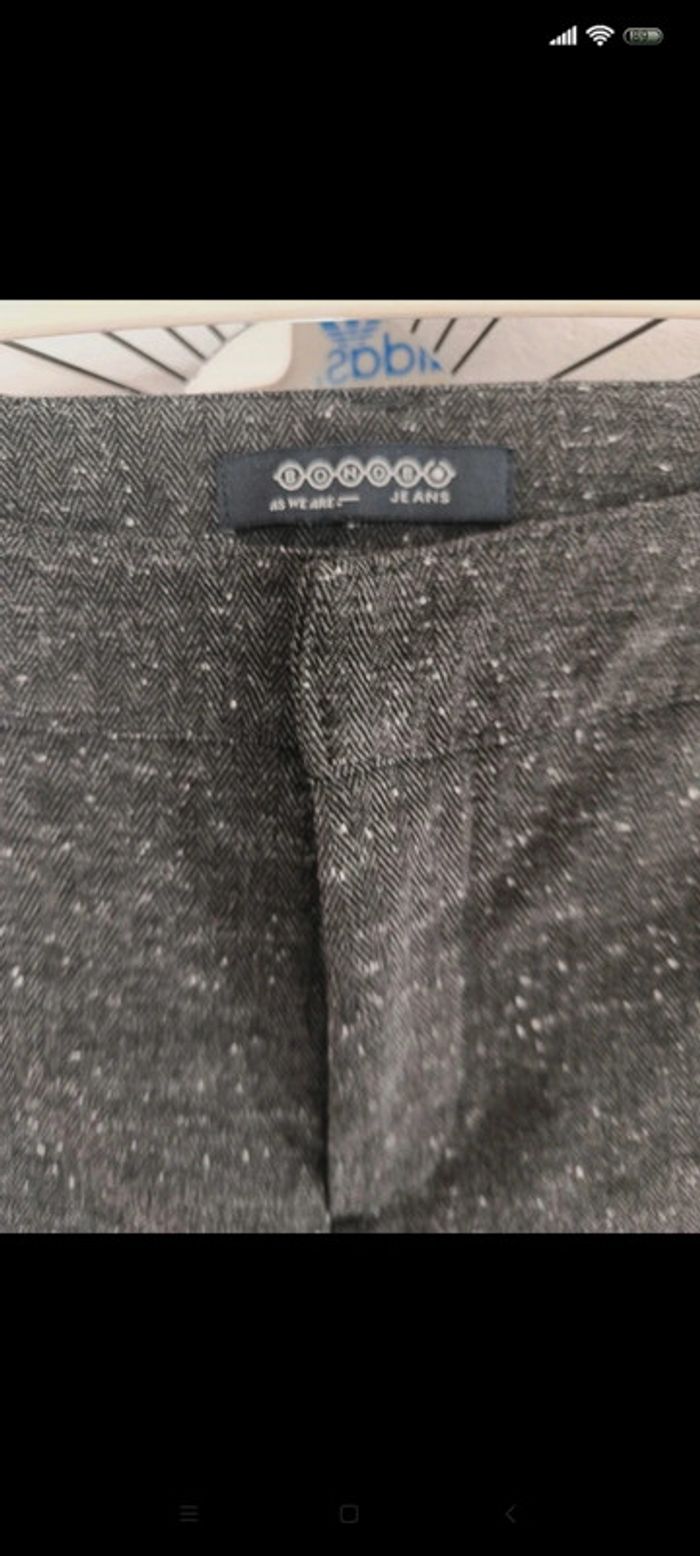 Pantalon droit, marque bonobo, petit revers sur le bas, noir moucheté gris t 36 #pantalonbonobo36