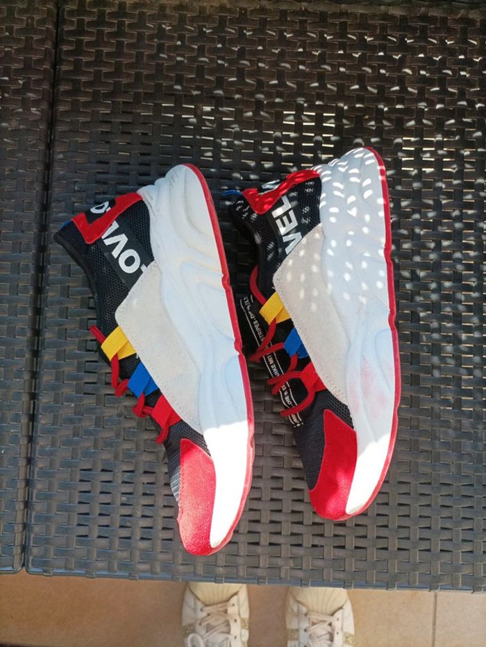 Baskets à semelles épaisses, t 41, bon état , manque semelles intérieures car portées avec semelles orthopédiques