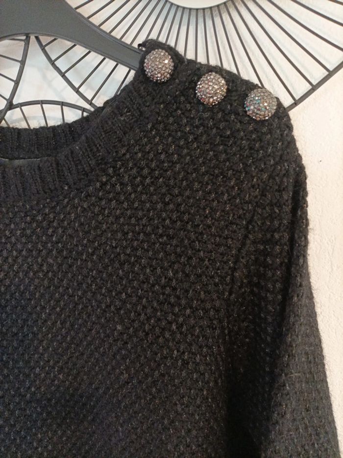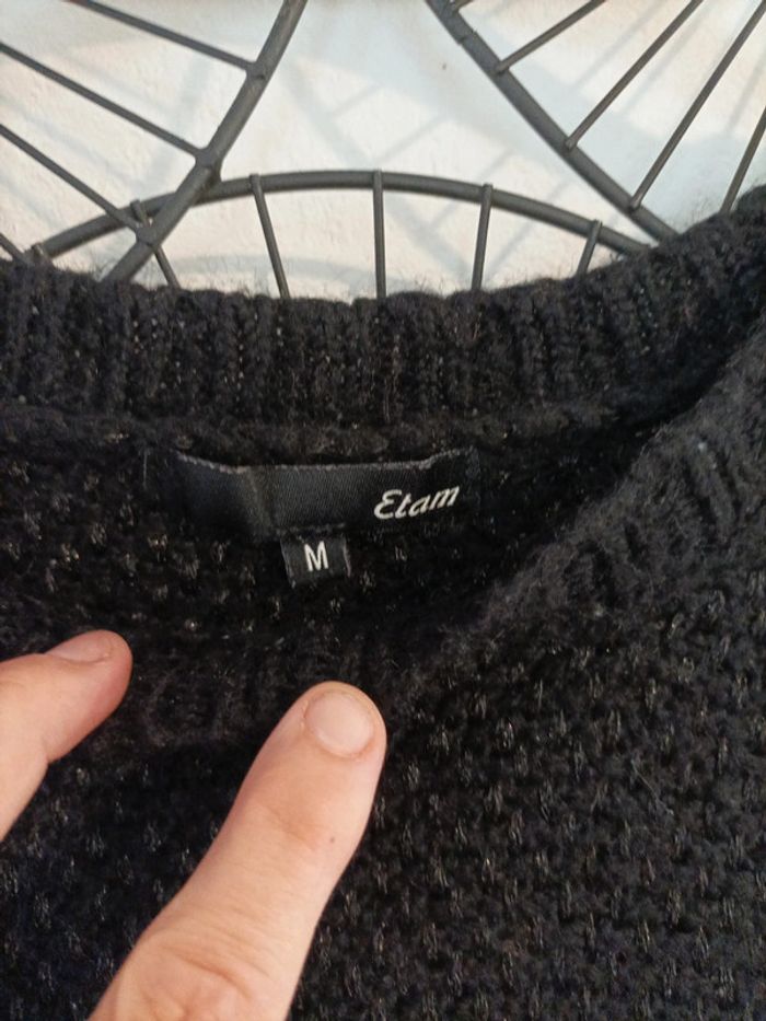 Pull noir avec quelques paillettes, taille M, bon état juste quelques bouloches sont perceptibles #pulletam38 #vetementsetam38